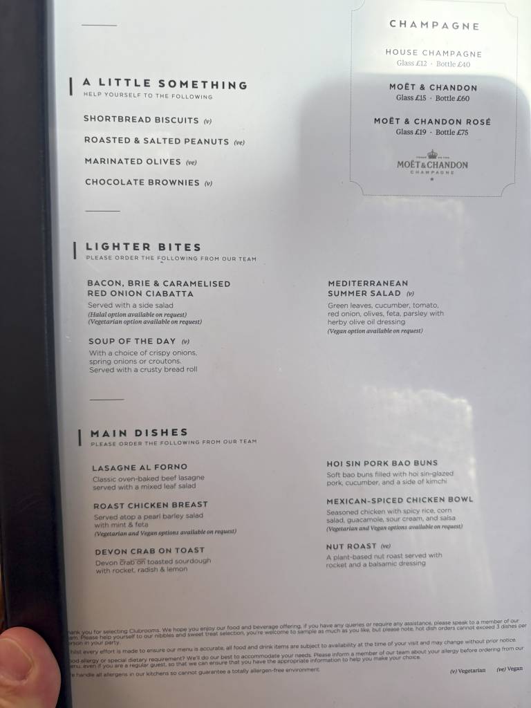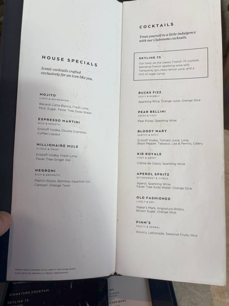 So war das Speise- und Getränkeangebot in der Clubrooms Lounge in LHR
