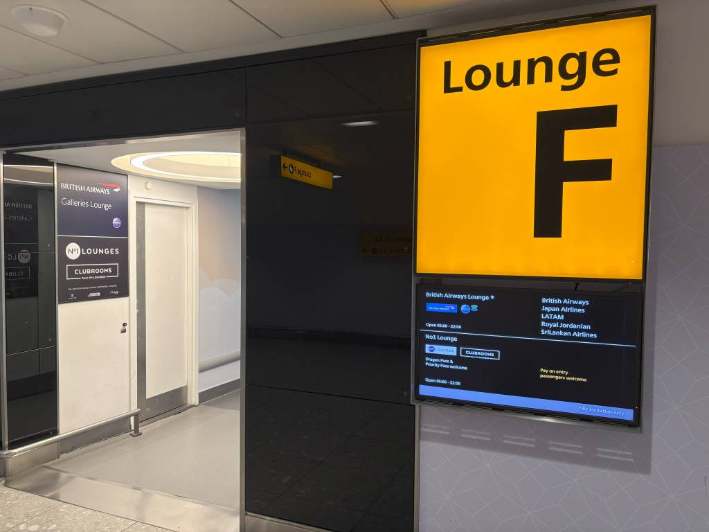 Das Netzwerk an Lounges am Flughafen London-Heathrow ist gut strukturiert. Jede Lounge hat einen eigenen Buchstaben und Lagepläne weisen den Weg. Die Clubrooms tragen den Beinamen „Lounge F“. Der Zugang befindet sich im Bereich der Gates 13-22 eine Etage über der Abflugebene.