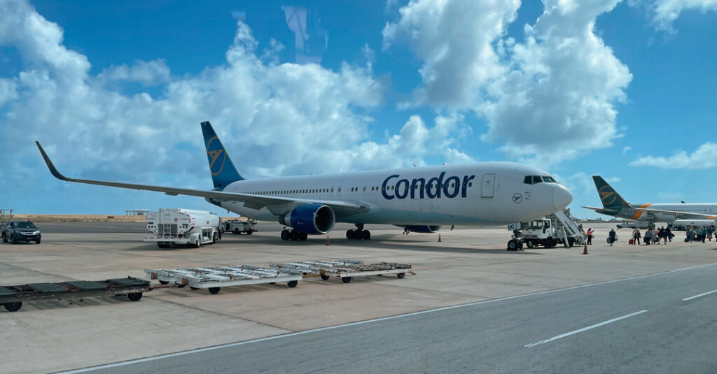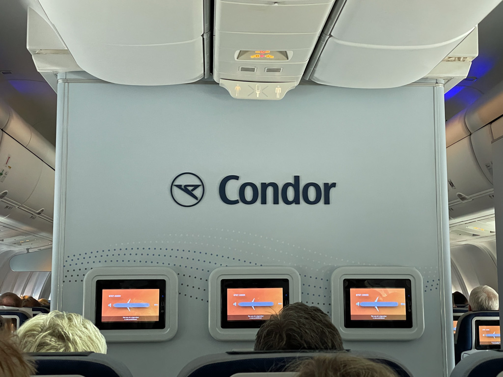 Die regelmäßigen Leser erinnern sich vielleicht, eigentlich hatten wir Flüge mit Discover Airlines gebucht, die diese aber nicht durchführen wollten. Daher mussten wir kurz vor knapp noch geeignete Flüge buchen und wurden bei TUI fündig, die mehrere Flugzeuge bei Condor gechartert hatten. Daher buchte ich diese Flüge dann per Telefen in der Economy Class. Alle anderen Reiseklassen waren bereits ansgebucht. So ging es dann ein paar Tage später als geplant mit einer Boeing 767-300ER von Condor von Frankfurt nach Barbados.