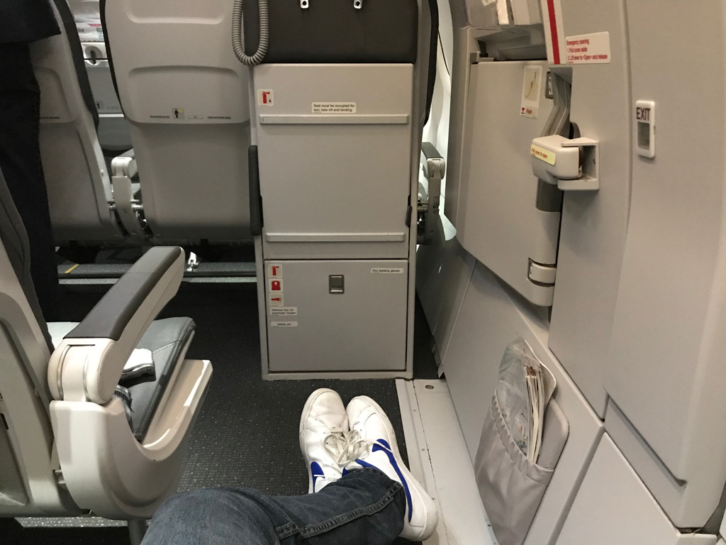 Da mein Flug ja sehr leer war, durfte ich in der vorderen Notausgangsreihe am Fenster, auf Platz 12F, sitzen.