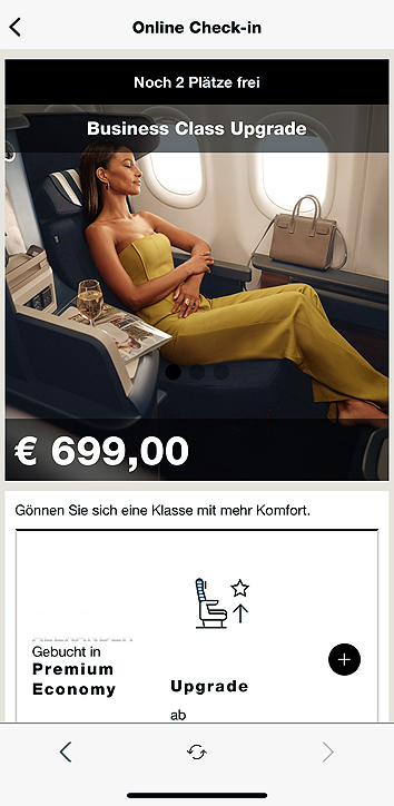 Bei Condor könnt Ihr im Online Check-in ein garantiertes Upgrade kaufen. In meinem Fall wollte Condor dafür 699 Euro haben.