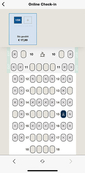 Sobald der Check-in öffnet, kosten alle noch wählbaren Sitze einheitlich 17,99 Euro.