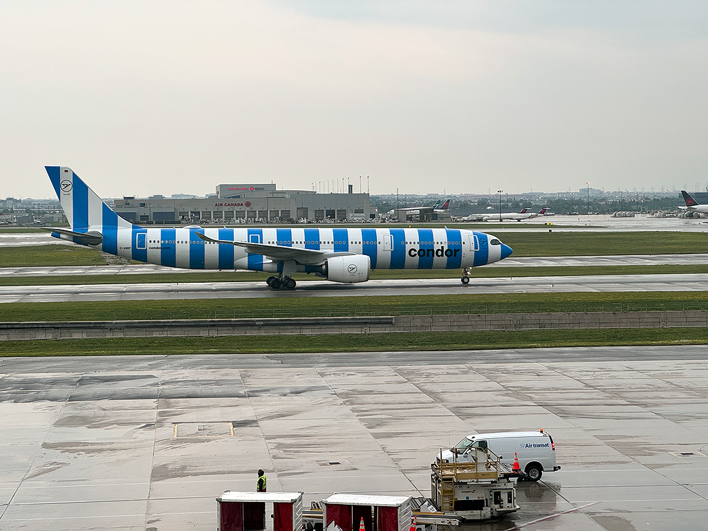 Für den Rückflug von Toronto nach Frankfurt wählte ich Condor. Ich wollte ohnehin einmal den Airbus A330-900neo von Condor fliegen und hatte nun eine gute Gelegenheit dazu. Als Reiseklasse entschied ich mich für die Premium Economy Class. Der Preisunterschied zu einem Economy Ticket mit Gepäck war nicht zu groß und auf einem so kurzen Flug über den Atlantik brauche ich keine Business Class – insbesondere dann nicht, wenn ich eine Airline testen möchte und für die Mahlzeiten wach bleiben „muss“. Wie es mir an Bord des Condorflugs gefallen hat, habe ich in der Review zusammengefasst.