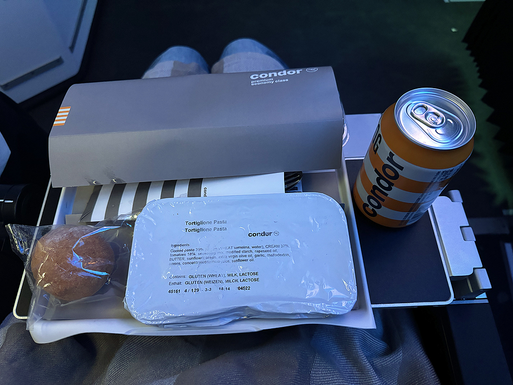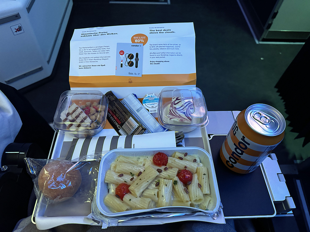 Das Essen war für meinen Geschmack passender als das, was in der Business angeboten wurde. Aber das kenne ich so schon: Ich bin zig mal in der Condor 767 Langstrecke in der Business geflogen und habe mehrfach um das Essen aus der Premuim Eco gebeten.