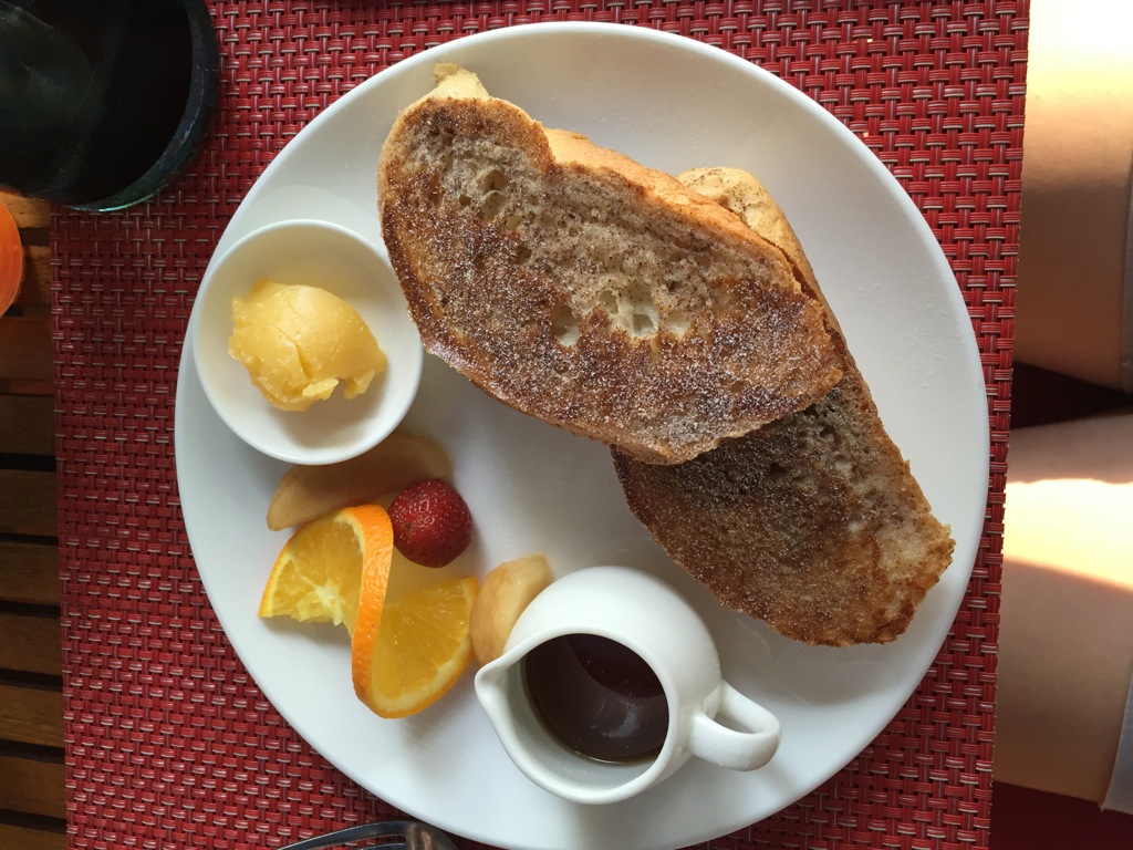 Beim Frühstück wird ein kleines Buffet im Restaurant angeboten. Dazu gibt es eine kleine Karte mit verschiedenen Eierspeisen, Süßspeisen und auch asiatischem Frühstück. Auch Sonderwünsche werden Euch hier sehr gerne erfüllt.