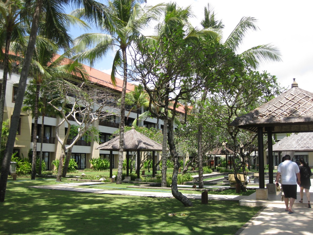 Das Conrad Bali selbst ist ein riesiges Resort. Dabei besteht es aus einem Gebäude mit mehreren Flügeln, sowie dem Conrad Suites Trakt. Das gesamte Hotelgebäude ist sehr luftig und offen gehalten. So finden sich im gesamten Hotel mehrere Innenhöfe, welche im balinesischen Stil gestaltet sind.