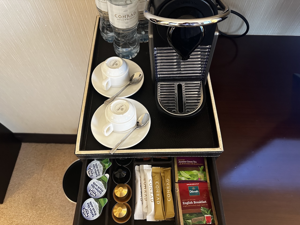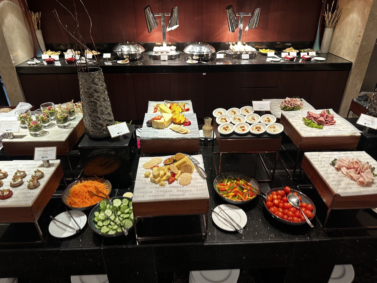 Das Conrad ist gut erreichbar, das Personal ziemlich freundlich und auch kompetent. Es hatte auch bei dem etwas kürzeren Aufenthalt wieder einige Highlights wie das gute Frühstück, die Poollandschaft und die Executive Lounge. Wir haben hier auch schon den Konferenzraum genutzt und sogar das Dinner ausfallen lassen, da das Angebot so umfangreich und ausgiebig war.