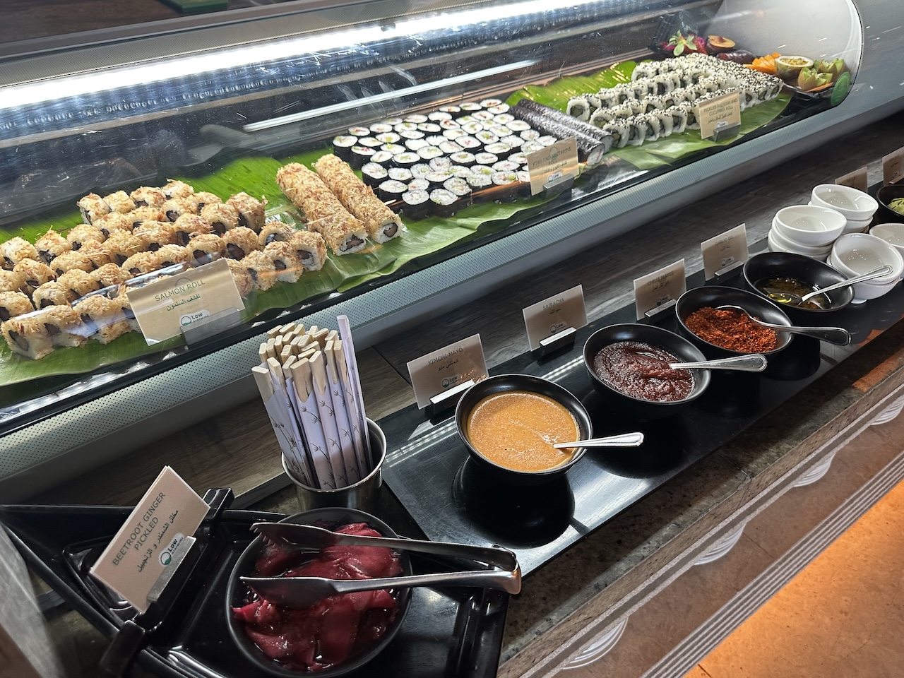 Die Auswahl ist wirklich sehr umfangreich, man kann hier auch indisch frühstücken, Sushi holen oder „nur“ ein kontinentales Frühstück einnehmen. Selbst bei längeren Aufenthalten wird es hier also wirklich nicht langweilig, auch wen man gerne, viel und ausgiebig frühstückt.