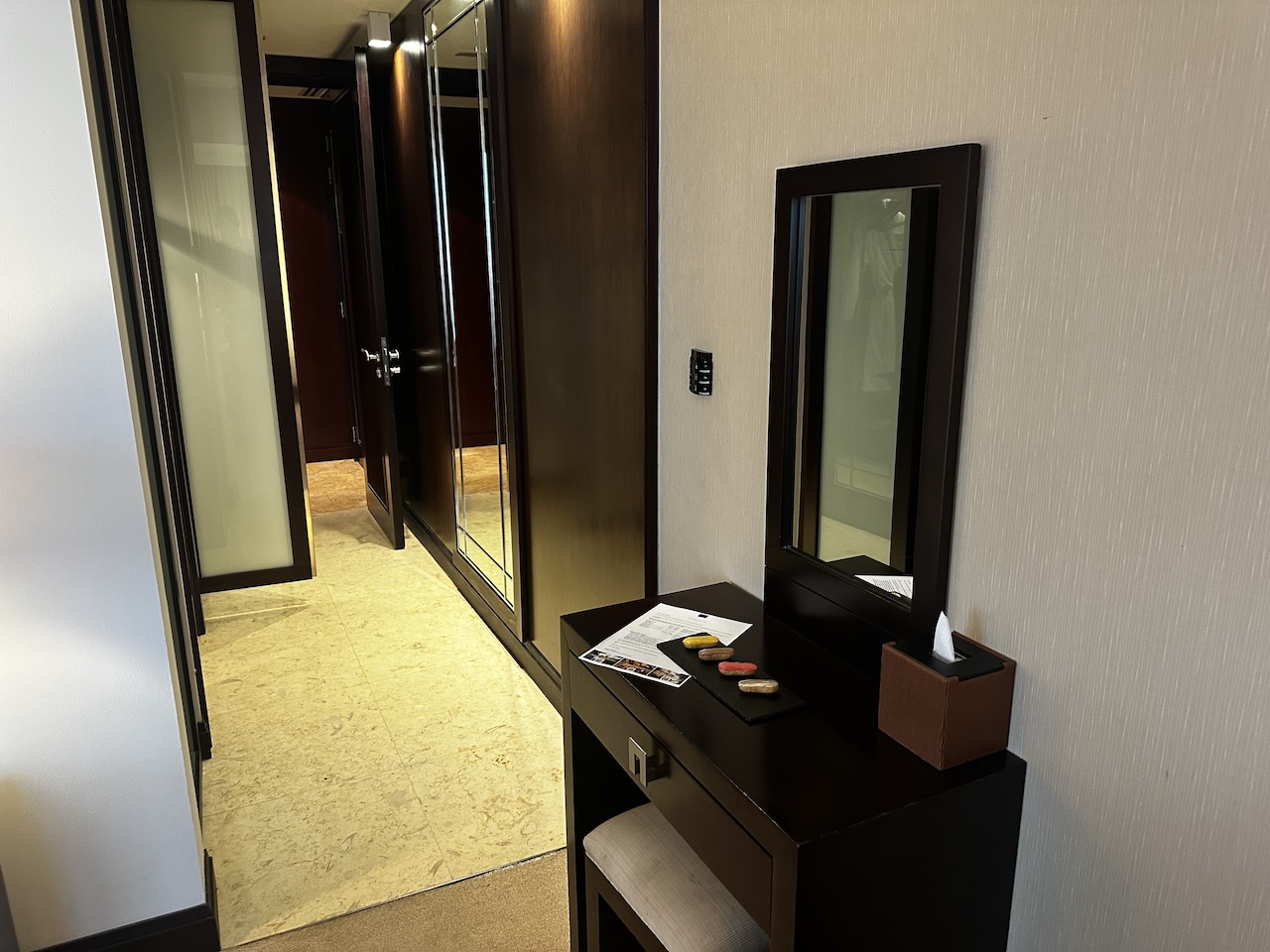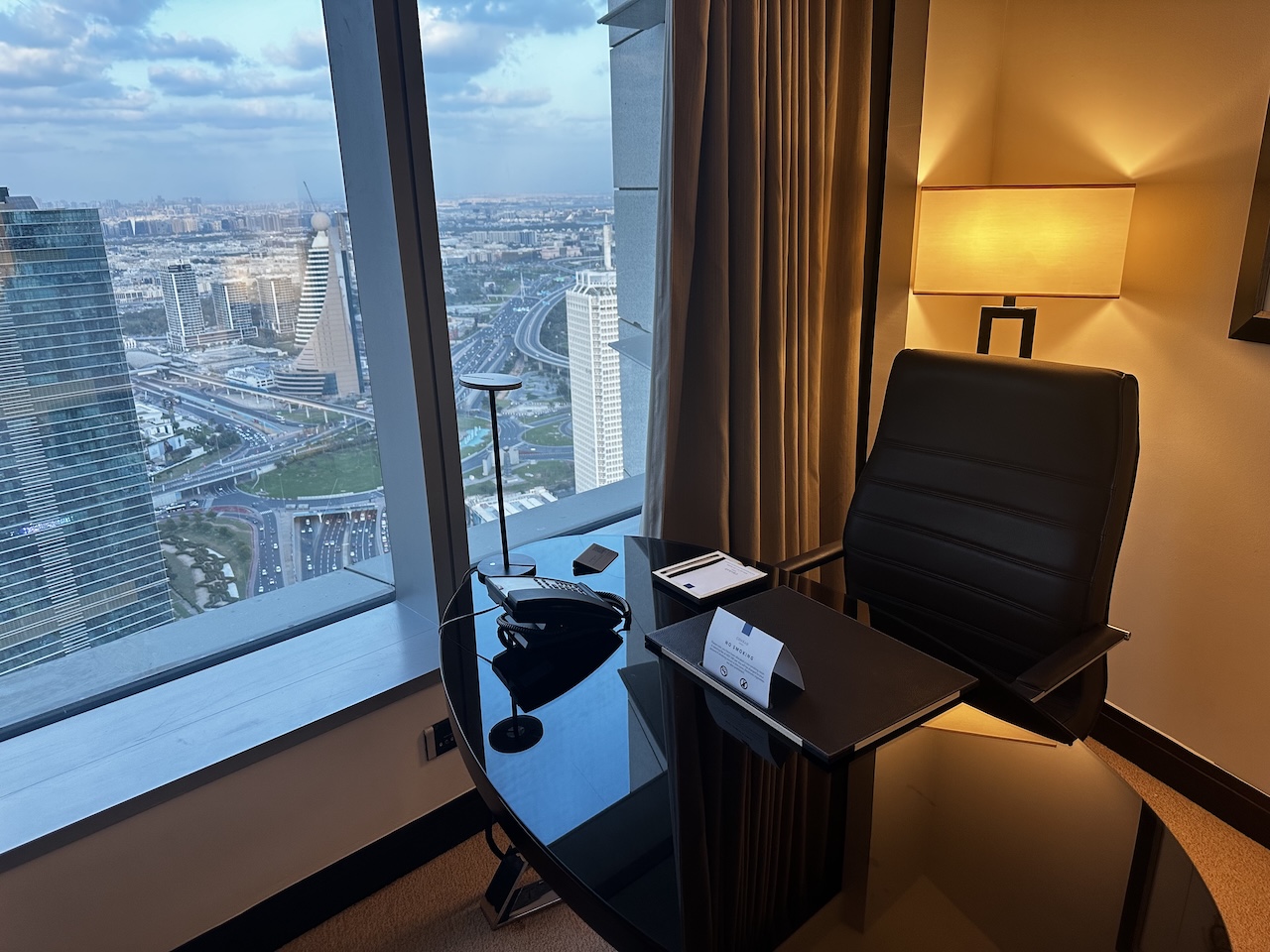 Ich war aber schon verabredet und wusste, dass ich am Abend nicht besonders viel Zeit im Zimmer verbringen werde, daher war der gewählte Raum für mich absolut okay. Ich hatte bereits am Vortag ein Upgrade erhalten und mir ein Eckzimmer auf der 44. Etage ausgesucht.