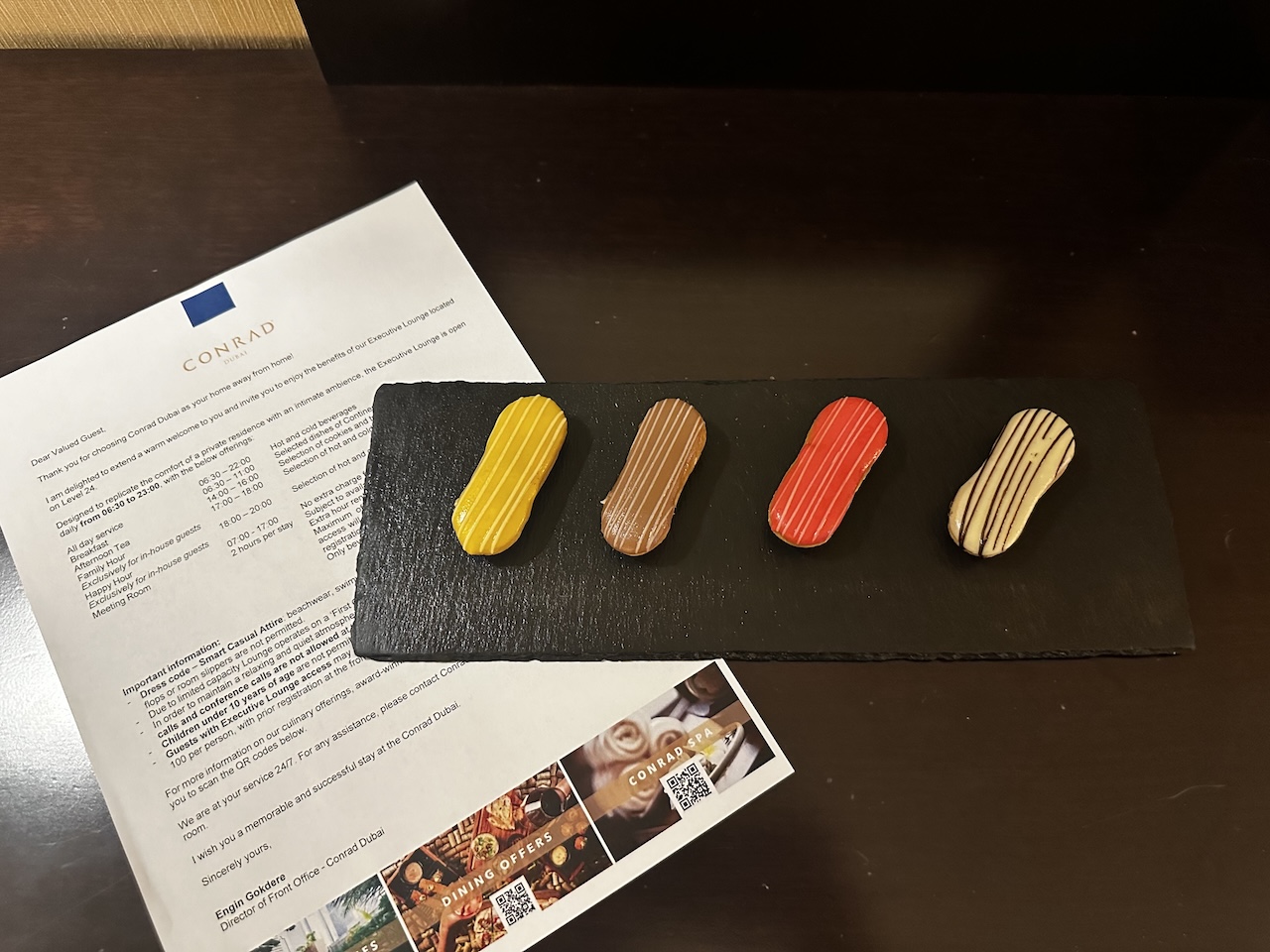 4 oder 5 mal bin ich zwischen 3 Nöchten und 1 Woche im Conrad Dubai gewesen. Häufig gab es Upgrades, immer early und auch late Check in/out. Die Freundlichkeit des Personals ist bemerkenswert. Beim Frühstücken eine Jacke im Restaurant vergessen, und sogleich klemmt sich eine Mitarbeiterin dahinter und findet die Jacke. Sauber zusammengelegt in einer Conrad-Tüte wir sie uns übergeben.
