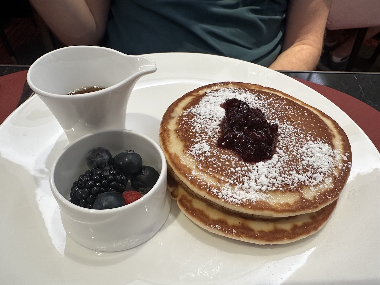 Wir haben das Frühstück in schöner Umgebung zelebriert und zum Abschluss noch einen Pancake bestellt.