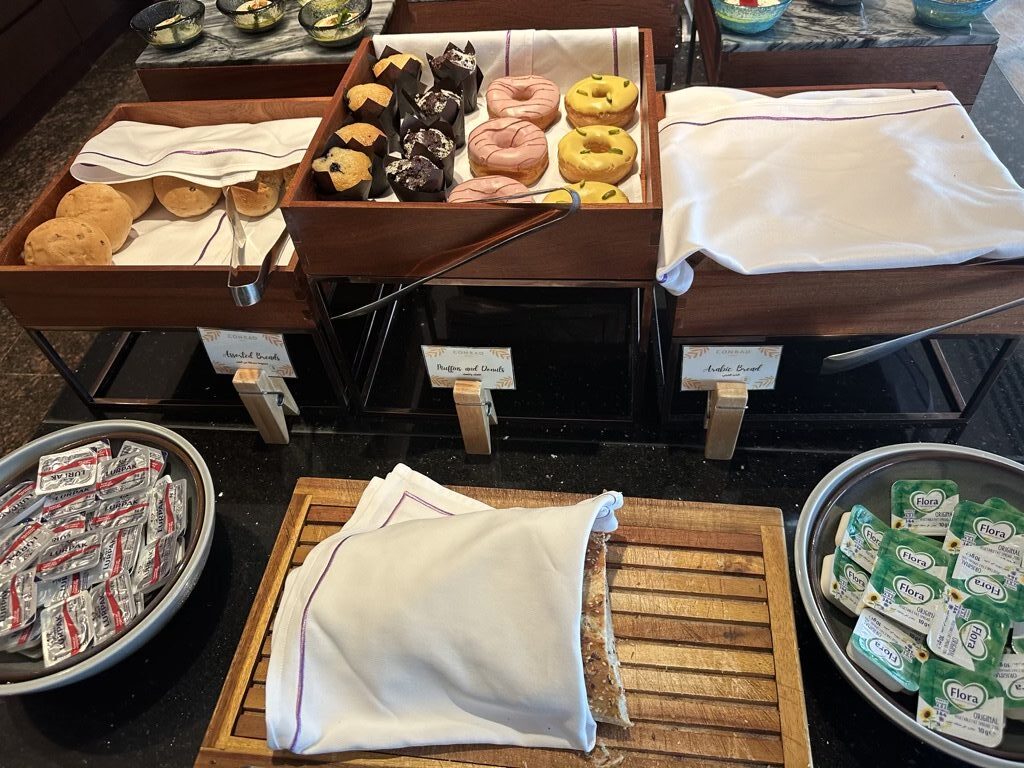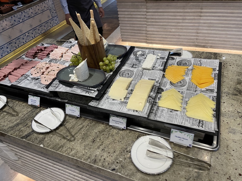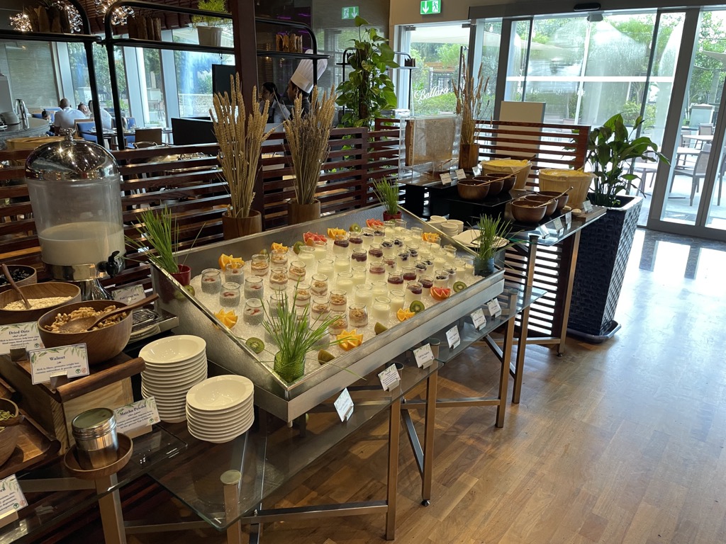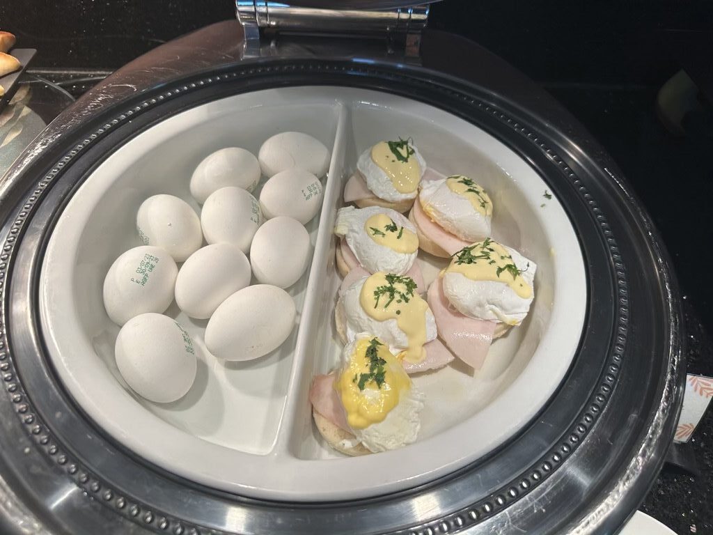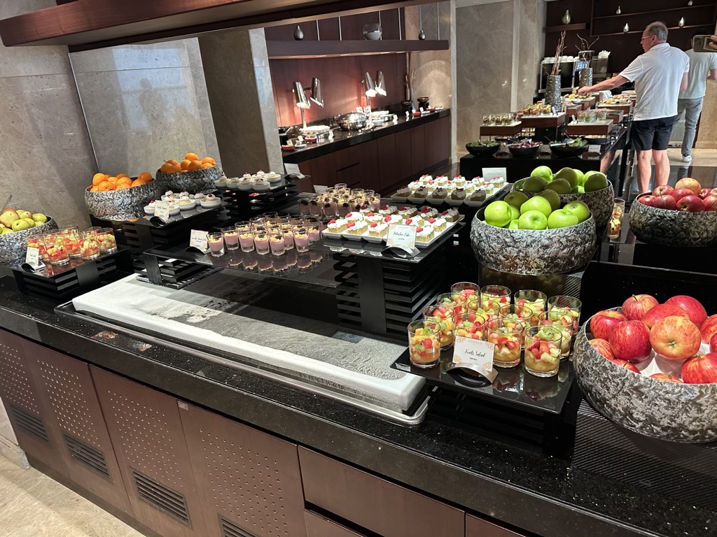 Wir haben sowohl im Restaurant als auch in der Lounge gefrühstückt. Und hier ist mein einziger Kritikpunkt dieses Aufenthaltes. Vor Corona konnte man in der Lounge ein vollwertiges Frühstück einnehmen, sogar frische Eierspeisen oder Pancakes / Frenchtoast wurde auf Wunsch zubereitet. Dies wird nicht mehr angeboten. Spiegelei oder Omelette wurde nicht angeboten, gekochte Eier und Eggs Benedict wurden in Warmhaltebehältern angeboten. Eggs Benedict im Warmhaltebehälter? Genau, wir haben auch nicht schlecht geschaut und mussten es testen. Sie waren vielleicht etwas kälter als Eier dir frisch aus kochendem Wasser kommen, aber tatsächlich sind sie ganz typisch nach Anstich „ausgelaufen“. Auch wenn wir bei den Eierspeisen wenig Wahl hatten, das war schon etwas beeindruckend.