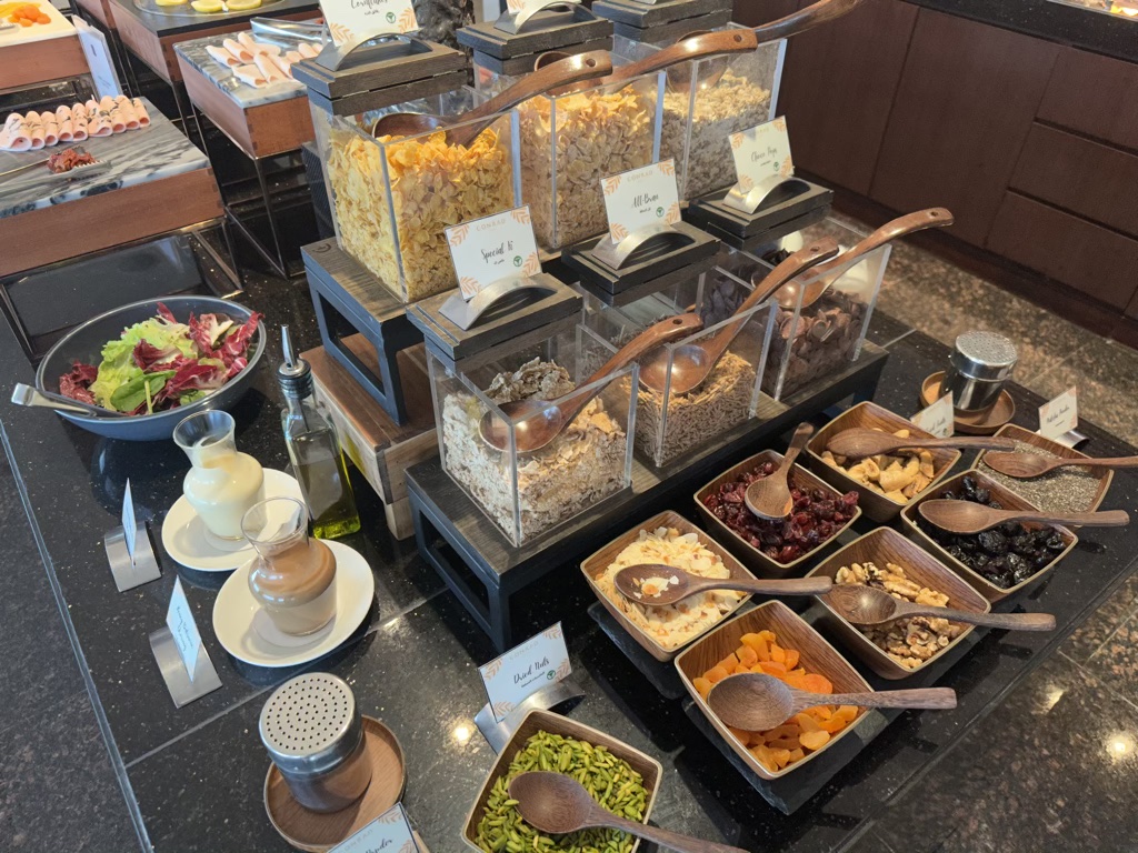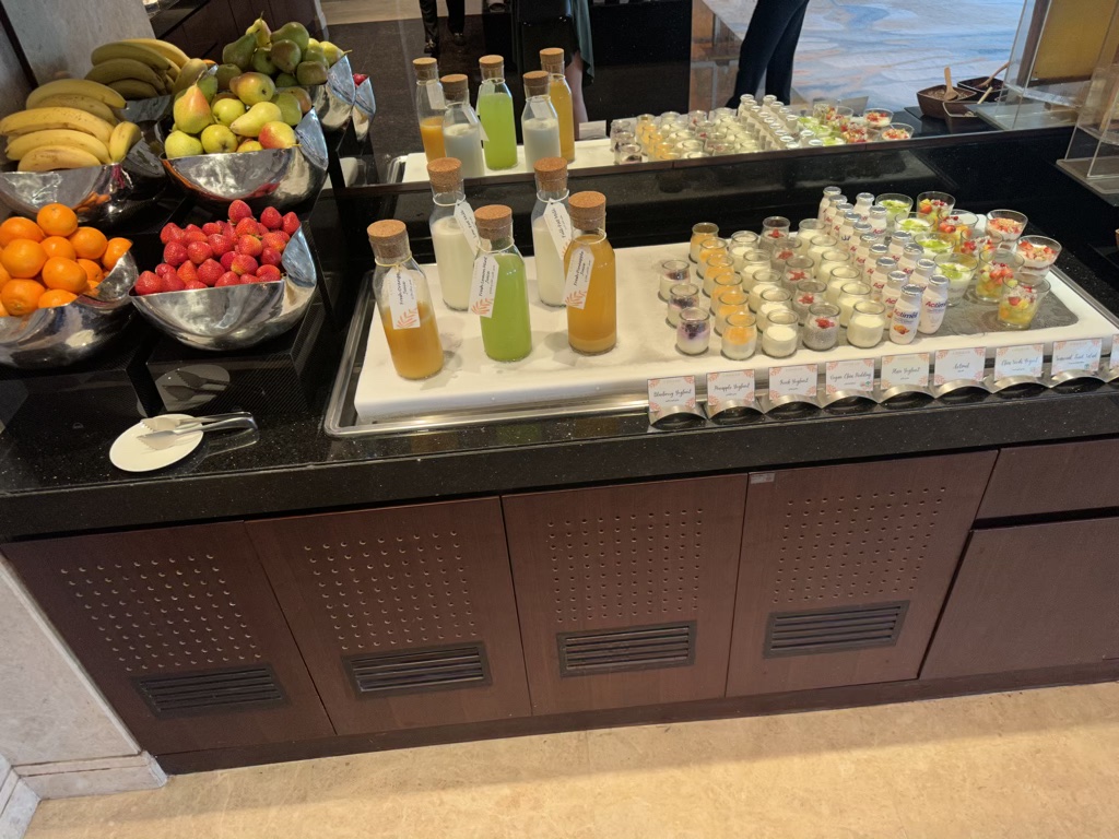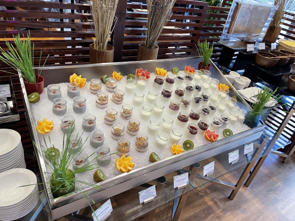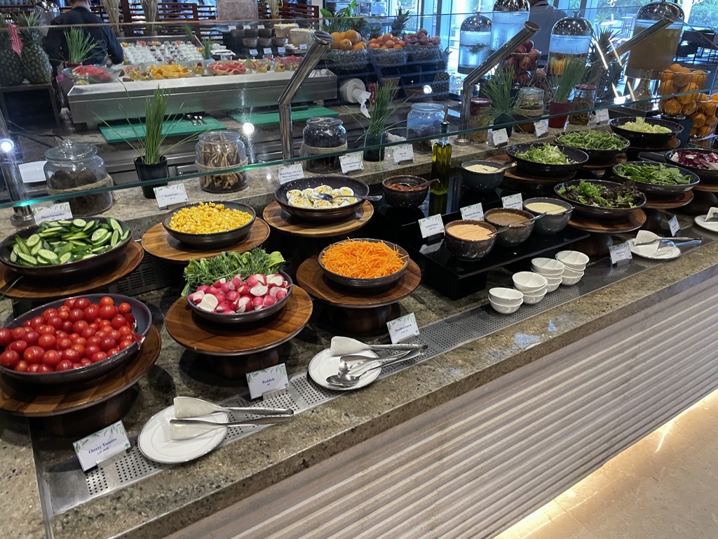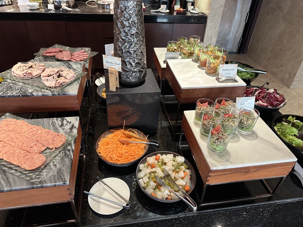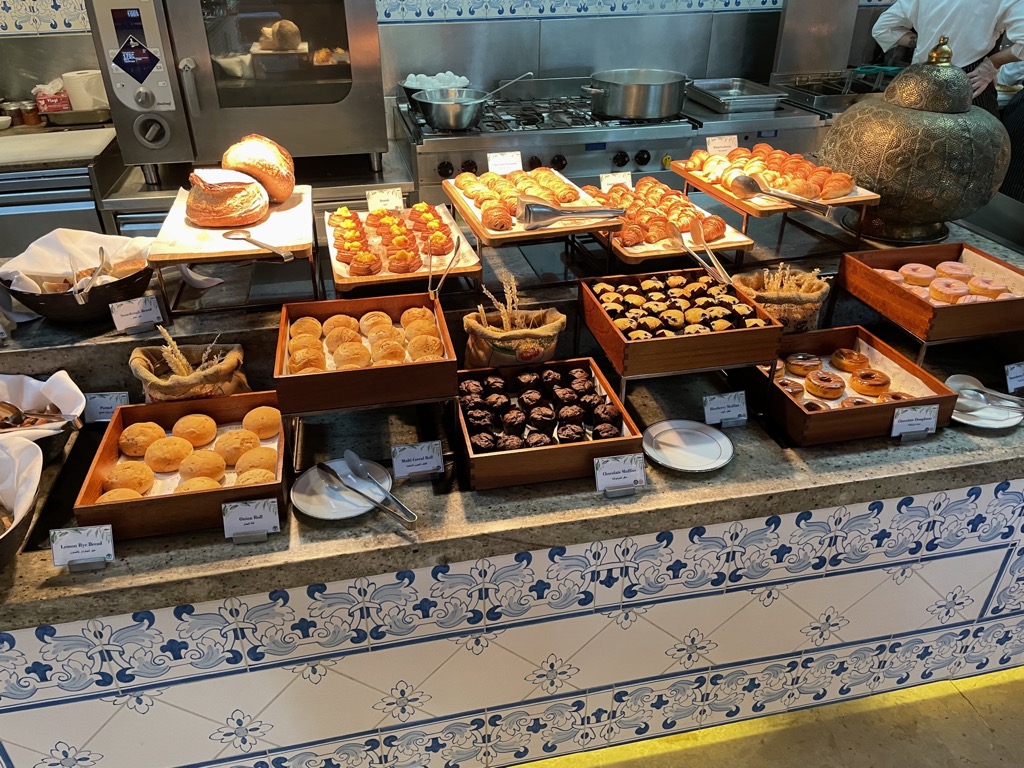 Wir haben sowohl im Restaurant als auch in der Lounge gefrühstückt. Und hier ist mein einziger Kritikpunkt dieses Aufenthaltes. Vor Corona konnte man in der Lounge ein vollwertiges Frühstück einnehmen, sogar frische Eierspeisen oder Pancakes / Frenchtoast wurde auf Wunsch zubereitet. Dies wird nicht mehr angeboten. Spiegelei oder Omelette wurde nicht angeboten, gekochte Eier und Eggs Benedict wurden in Warmhaltebehältern angeboten. Eggs Benedict im Warmhaltebehälter? Genau, wir haben auch nicht schlecht geschaut und mussten es testen. Sie waren vielleicht etwas kälter als Eier dir frisch aus kochendem Wasser kommen, aber tatsächlich sind sie ganz typisch nach Anstich „ausgelaufen“. Auch wenn wir bei den Eierspeisen wenig Wahl hatten, das war schon etwas beeindruckend.
