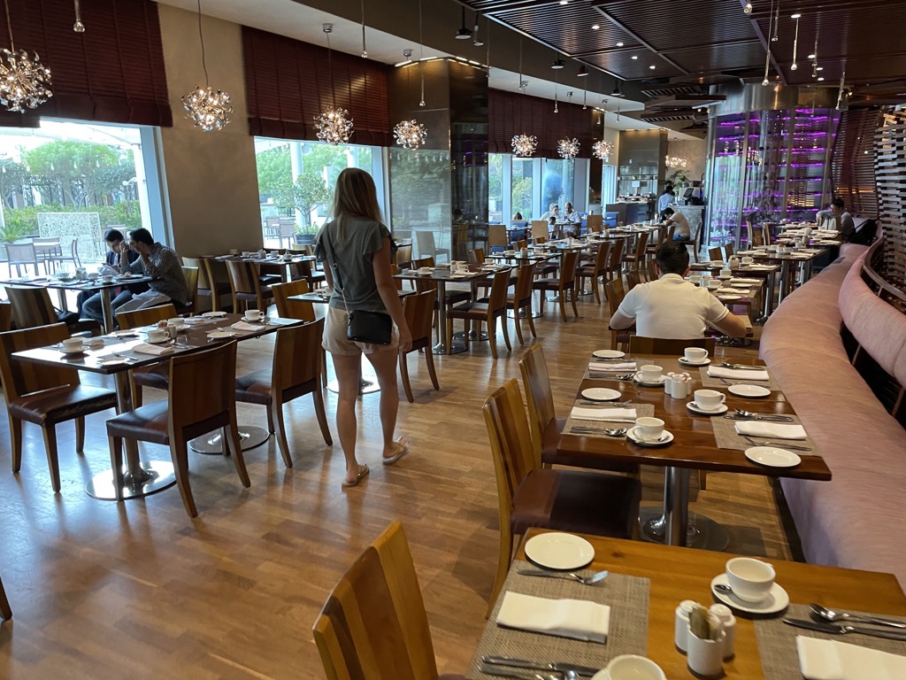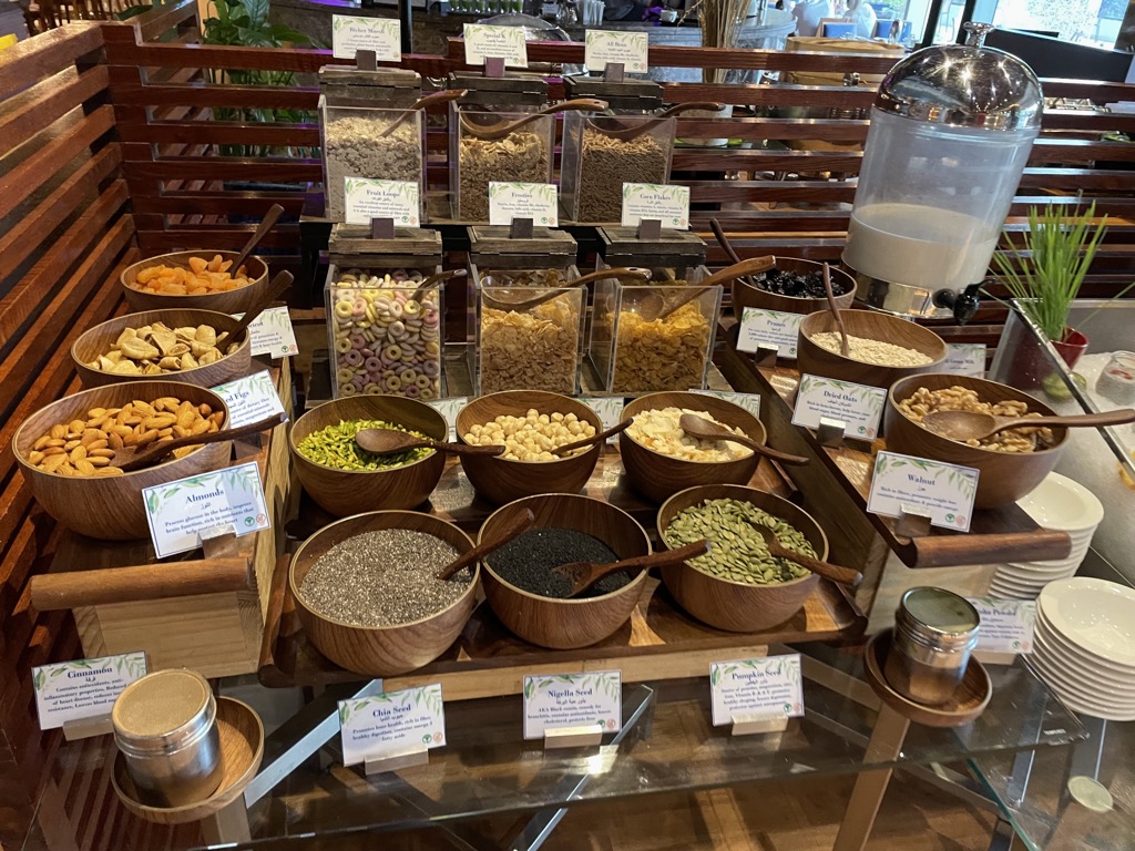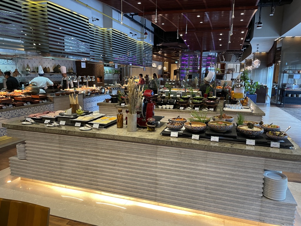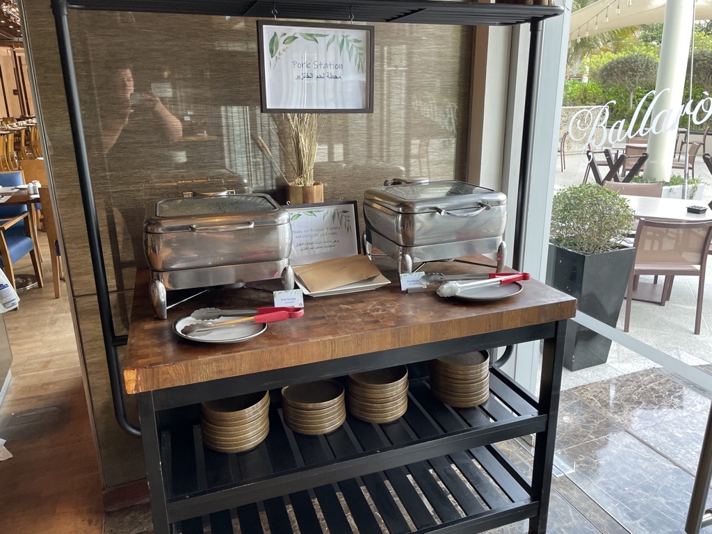 Das Frühstück am nächsten Tag im Restaurant hingegen war so umfangreich, hier blieb kein Wunsch offen. Es gibt nicht nur eine Station, an denen frische Eierspeisen zubereitet werden und viele Warmhaltebehälter, es gibt auch verschiedene Stände mit unterschiedlichen Landesthemen, wie indisch, asiatisch, westlich usw. Interessant war auch ein extra Stand für Schweinefleisch-Speisen, was in einem muslimischen Land nicht selbstverständlich ist. Wenn man nicht gerade zur Rush Hour kommt, würde ich klar das Frühstück im Restaurant empfehlen.