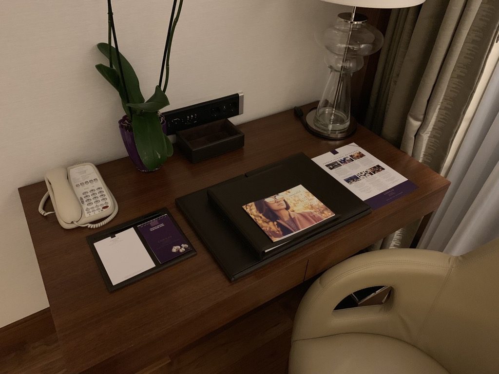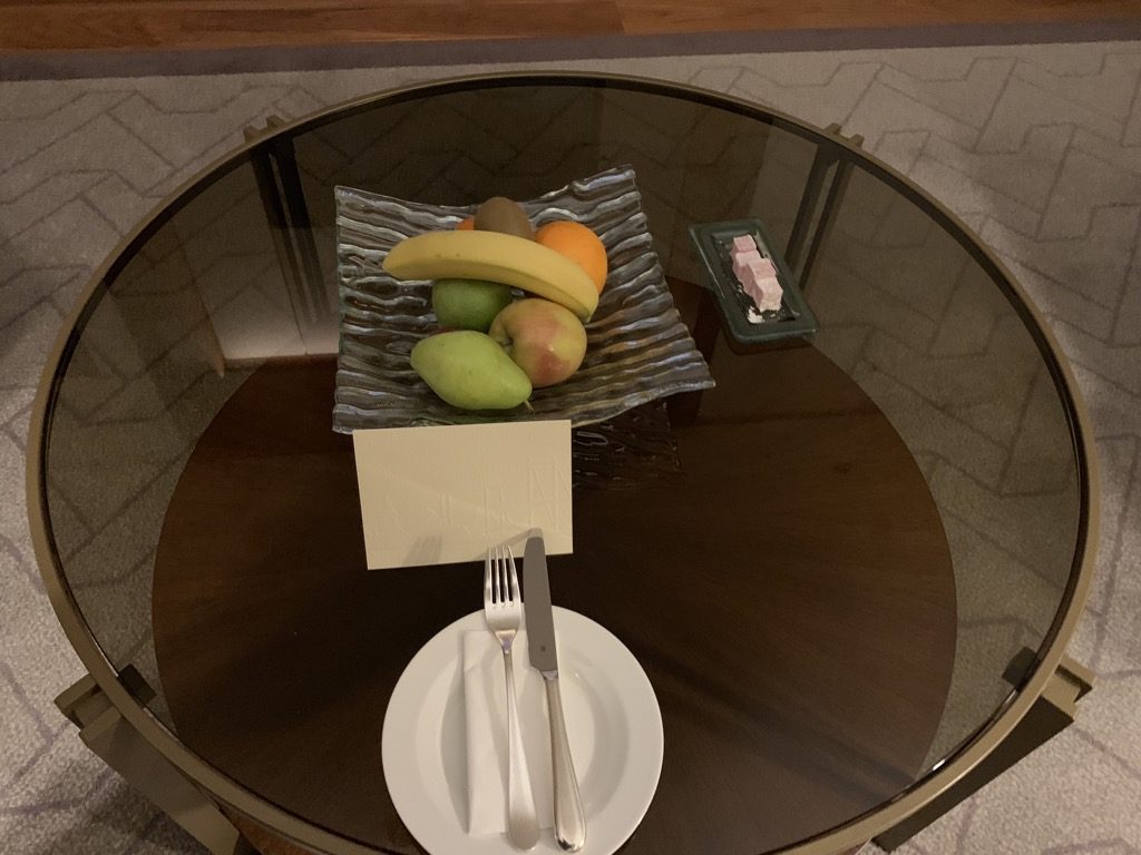 Im Wohnzimmer befindet sich auch die Minibar und die Nespresso Kaffeemaschine. Während der Kaffee und das Wasser natürlich kostenlos sind, sind die Preise in der Minibar extrem hoch, was mich überrascht hat, denn selbst die Preise im Room Service sind sehr günstig für europäische Verhältnisse.
