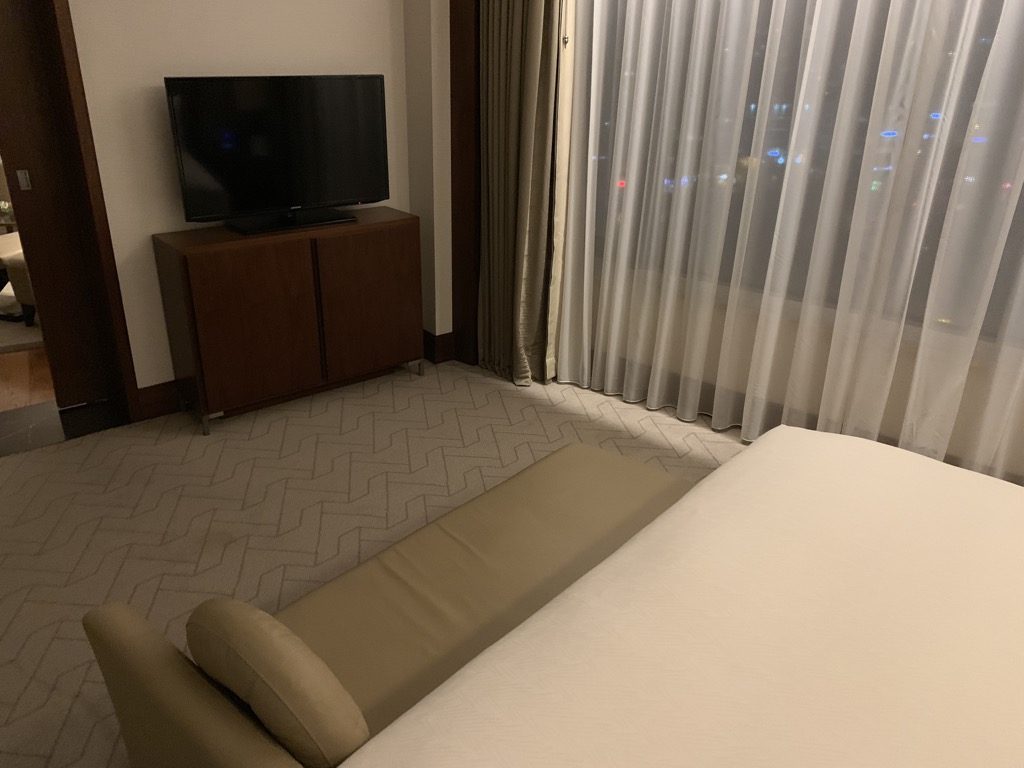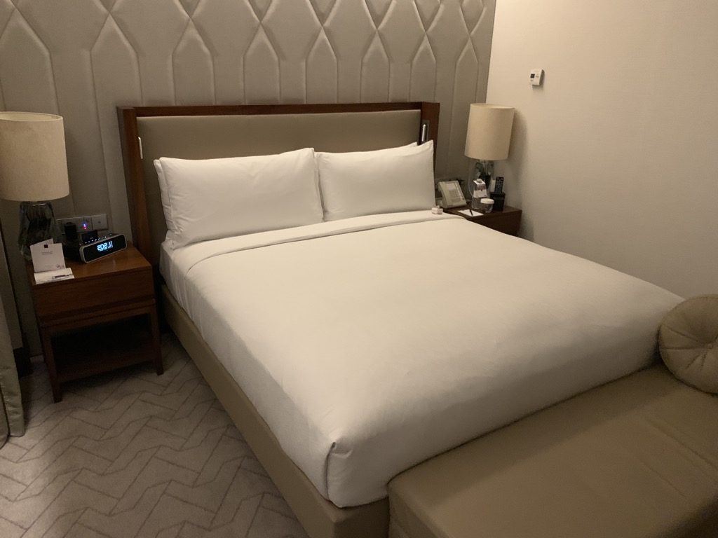 Durch eine Schiebetür im Wohnzimmer kommt man in das Schlafzimmer der Suite, welches im Conrad Istanbul auch angenehm groß ist. Kleine Suiten haben oft den Nachteil, dass die Schlafzimmer gerade groß genug für das Bett sind – dies war hier nicht der Fall.