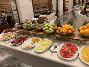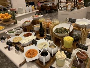 Auf verschiedenen Buffets wird eine Vielzahl von Speisen angeboten und Köche bereiten auch Eierspeisen nach Wunsch zu. Dabei gibt es neben klassischem „American Breakfast“ auch eine Reihe von türkischen, orientalischen und asiatischen Gerichten.
