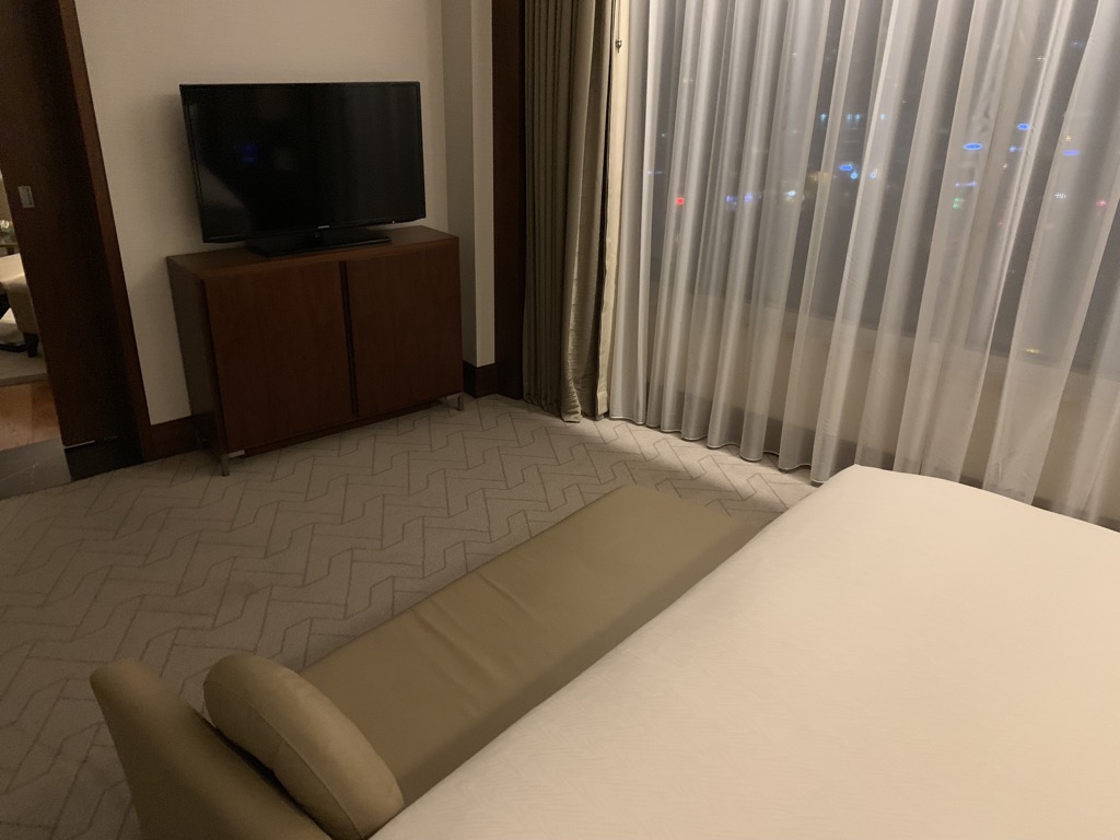 Durch eine Schiebetür im Wohnzimmer kommt man in das Schlafzimmer der Suite, welches im Conrad Istanbul auch angenehm groß ist. Kleine Suiten haben oft den Nachteil, dass die Schlafzimmer gerade groß genug für das Bett sind – dies war hier nicht der Fall.