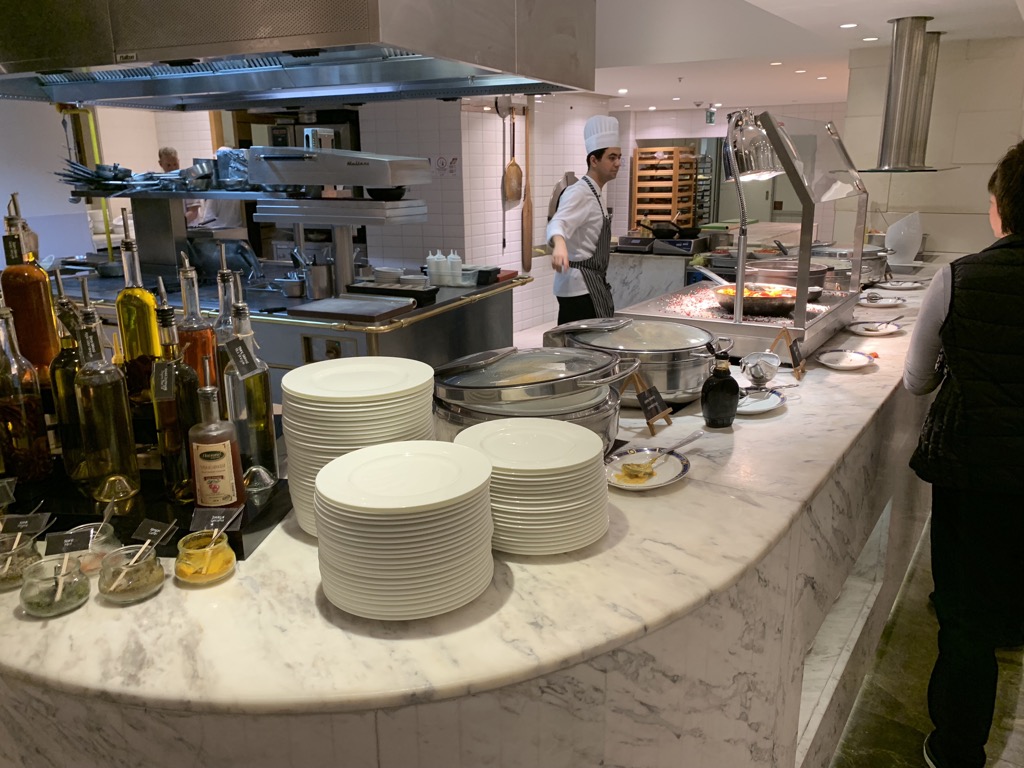 Auf verschiedenen Buffets wird eine Vielzahl von Speisen angeboten und Köche bereiten auch Eierspeisen nach Wunsch zu. Dabei gibt es neben klassischem „American Breakfast“ auch eine Reihe von türkischen, orientalischen und asiatischen Gerichten.