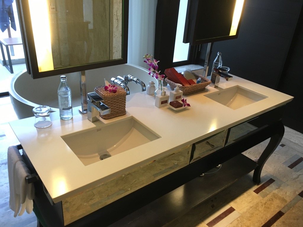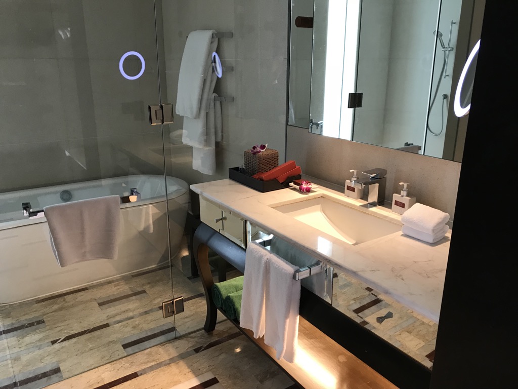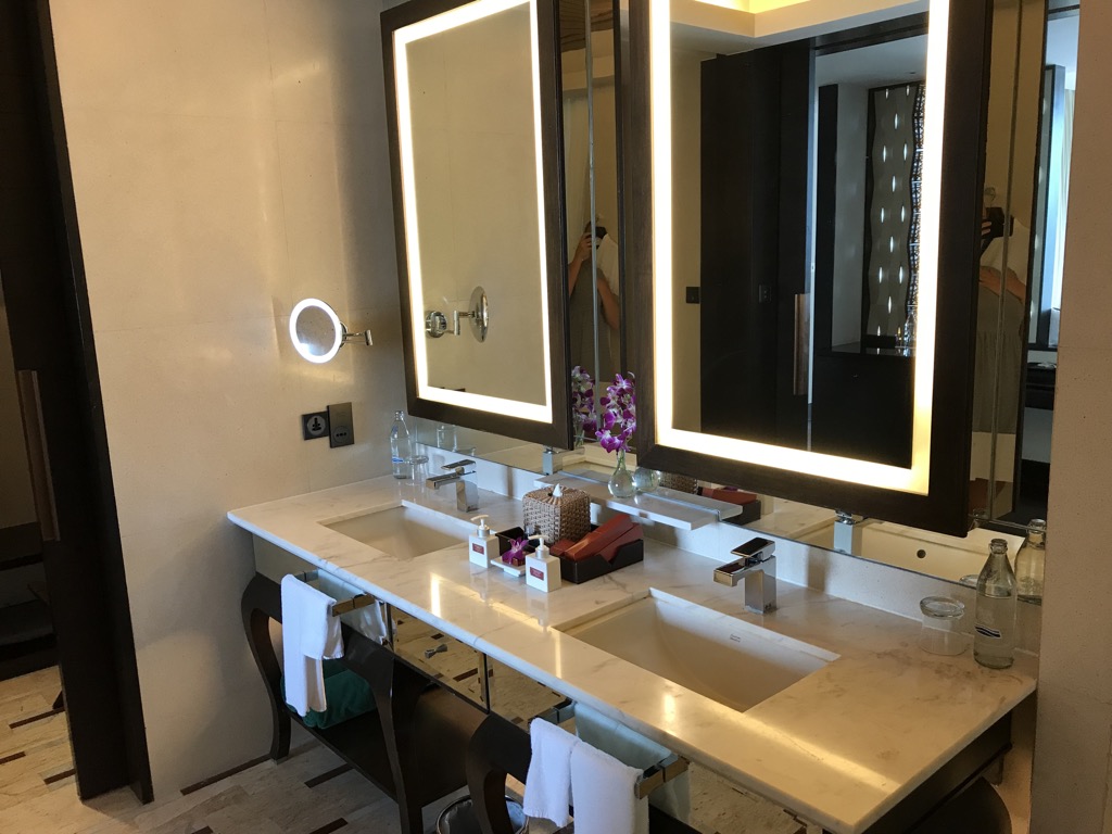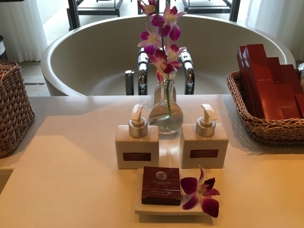 Eine Sache, die wir so in noch keinem anderen Hotel kennengelernt haben, waren die Amenities. Diese konnten wir bereits beim Check-In aus drei Optionen wählen. Die gewählte Option wurde aufs Zimmer gebracht und regelmäßig aufgefüllt.