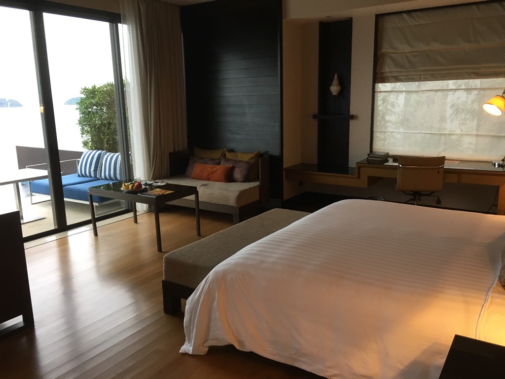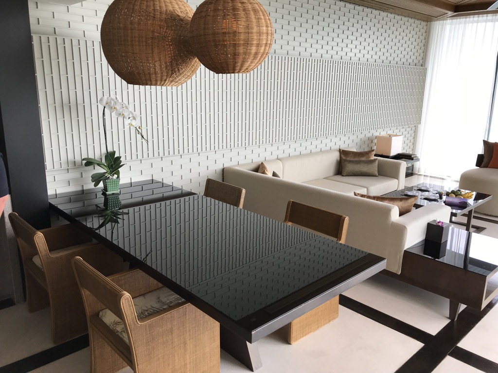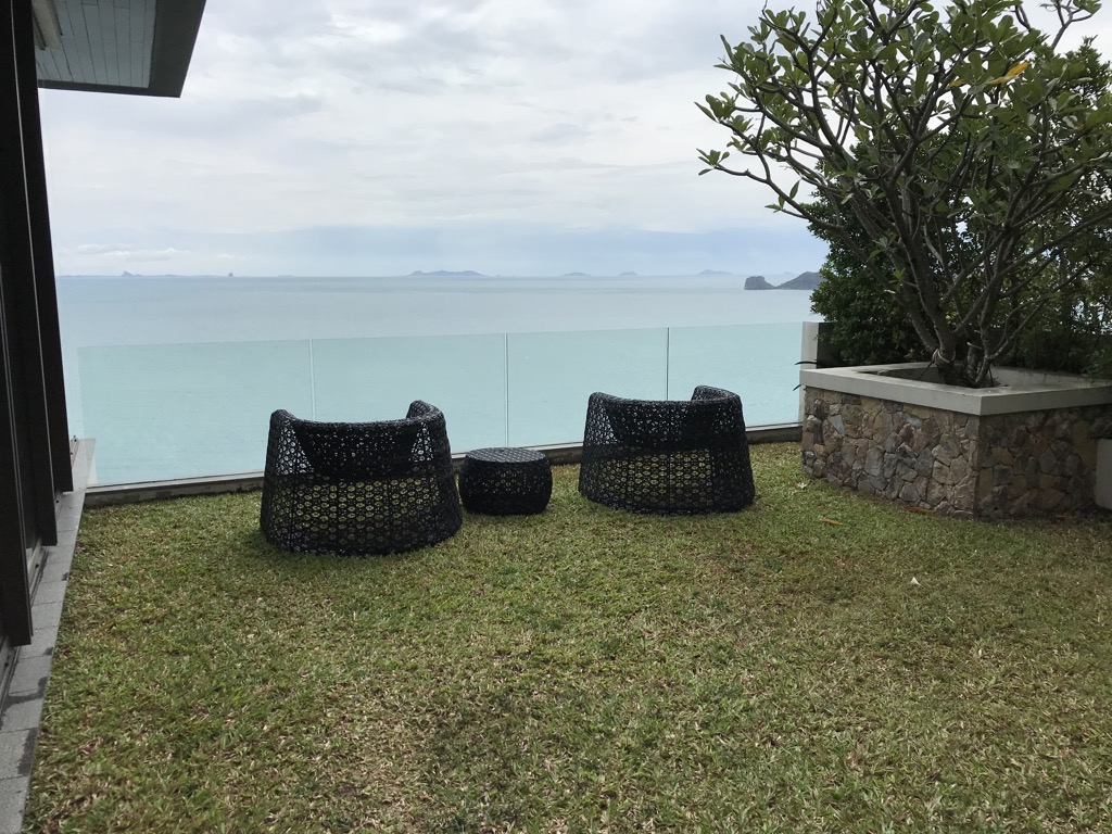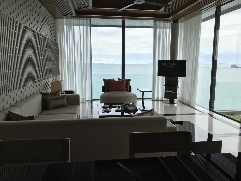Nach einem kurzen Flug in einer recht alten Boeing von Thai kamen wir endlich an einem unserer Hauptziele, Koh Samui, an. Nach der Landung warteten wir kurz auf unser Gepäck und liefen anschließend in Richtung Meeting Point, wo der vorbestelle Fahrer schon auf uns wartete. Nach einer etwa einstündigen Fahrt kamen wir am Conrad Koh Samui, einem reinen Villa-Hotel an. Die kompletten Villen liegen an einem Hang, somit hat jede Villa Meerblick.