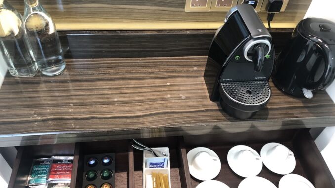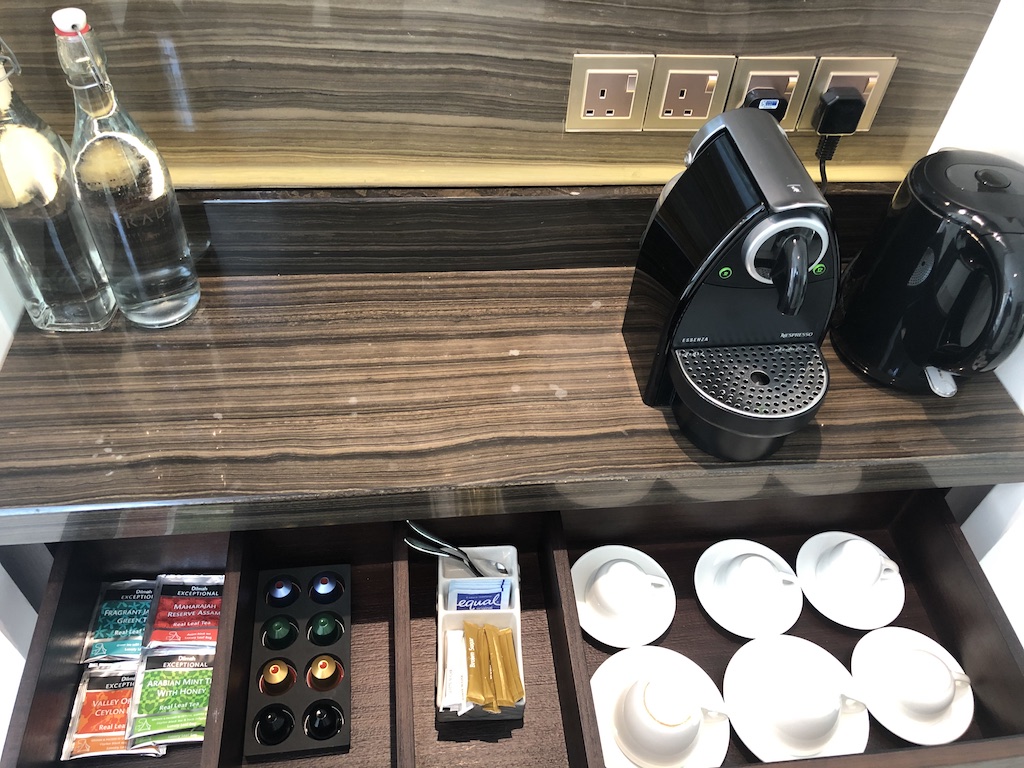 Die Original-Kapseln werden zweimal täglich aufgestockt, auch beim kostenlosen Wasser ist das Hotel nicht geizig. Mehrere große Flaschen mit gefiltertem Wasser werden sowohl morgens als auch zum Turn-Down-Service am Abend aufgefüllt.