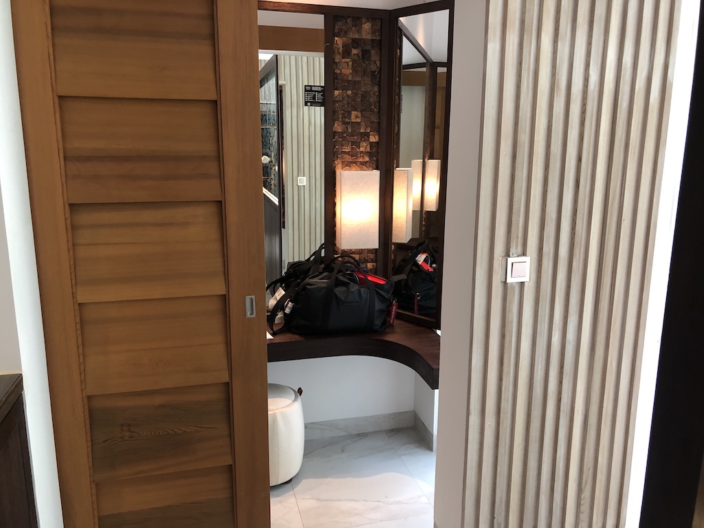 Nach einem erfrischenden Kokosnuss-Drink und etwas Warten im klimatisierten Raum ging es zur Rezeption. Dort erkundeten wir uns nach den anderen Zimmerkategorien, unsere zuständige Betreuerin hat uns daraufhin mit einem Buggy die anderen verfügbaren Zimmer gezeigt. Das Conrad gewährt in der Regel keine kostenfreien Upgrades für Statuskunden.