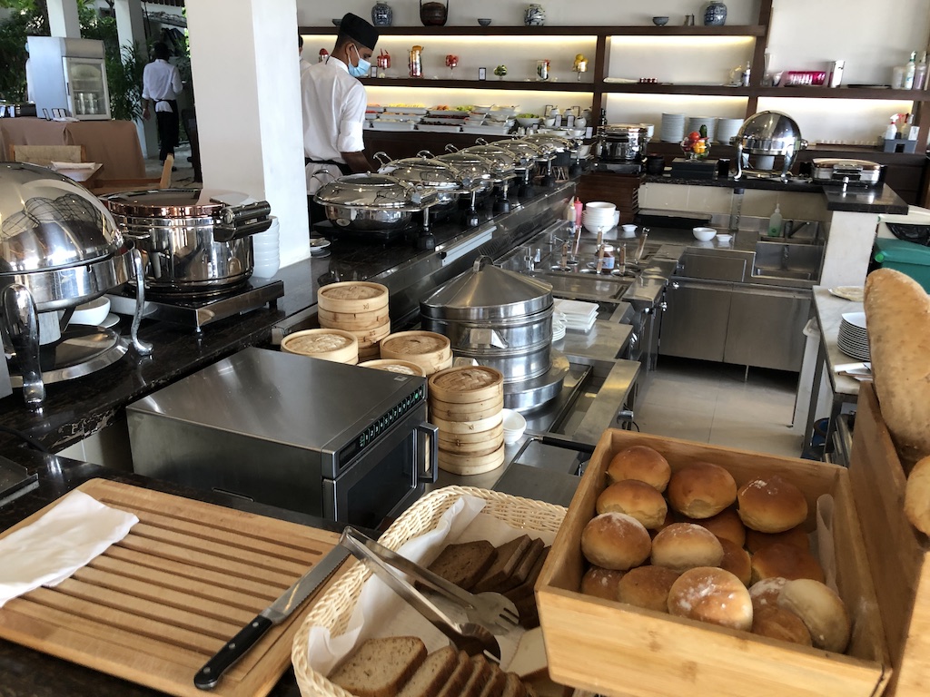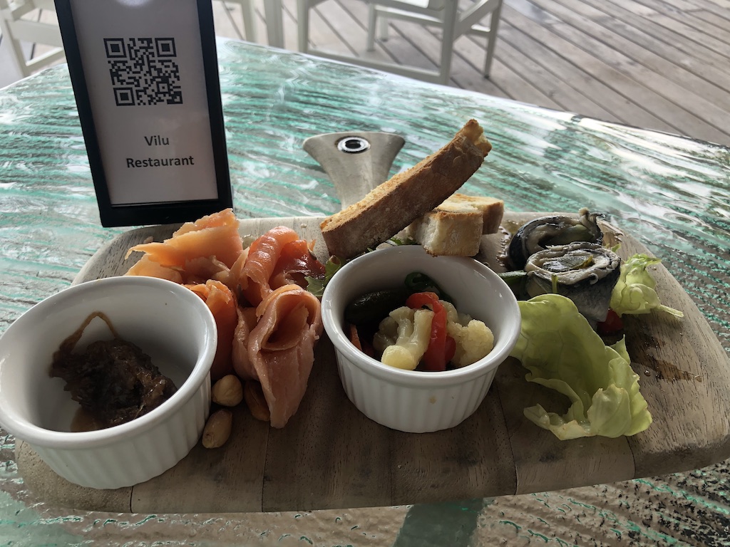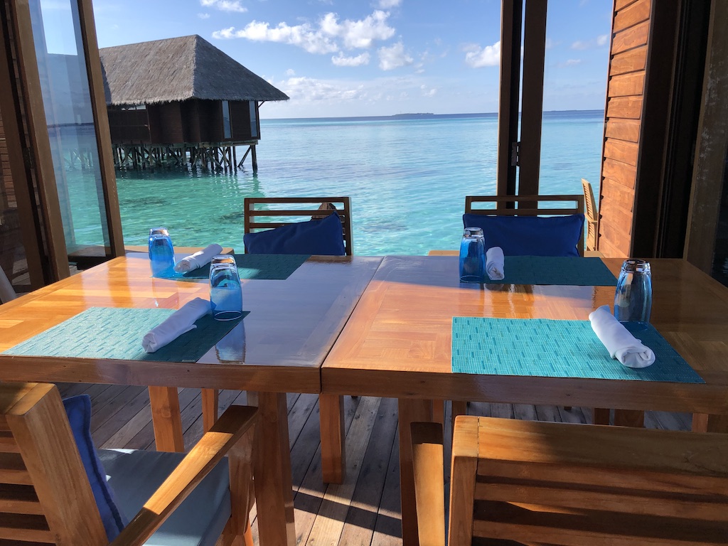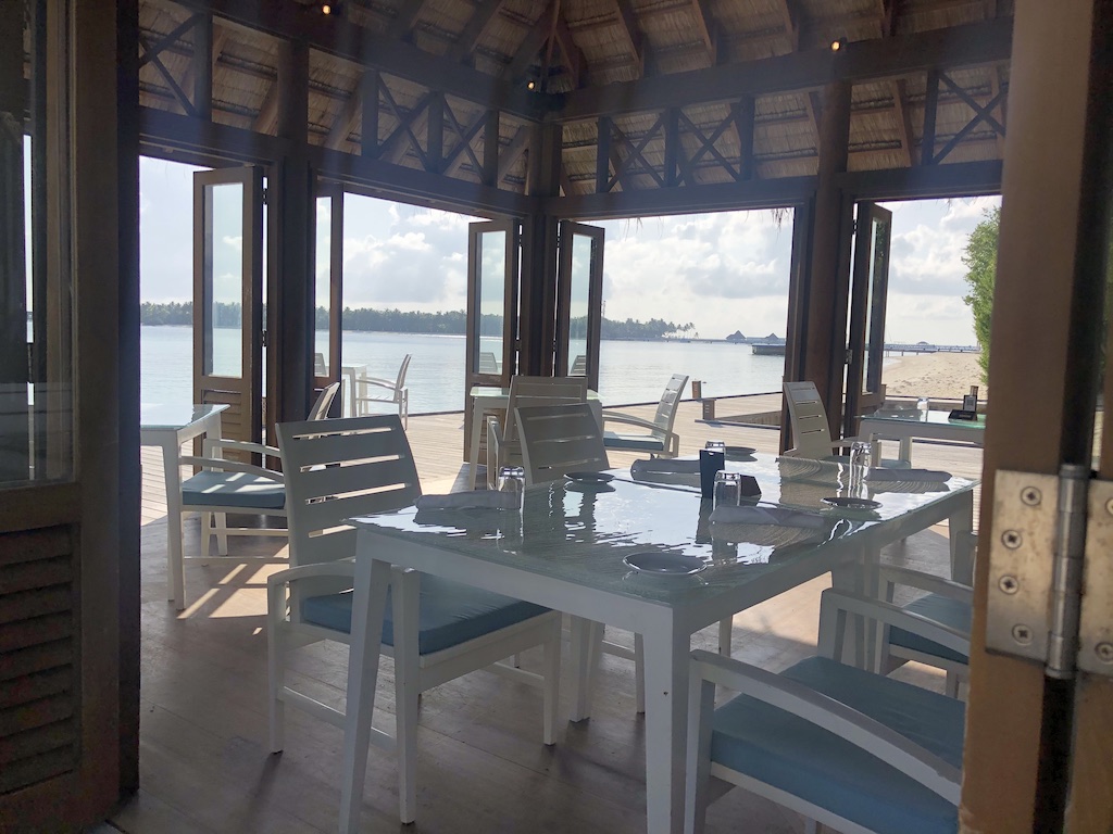In beiden Restaurants gibt es sowohl einen Innen- als auch einen Außenbereich. Persönlich tendierte ich mehr zum Frühstück im Vilu, wohin man zu Fuß, mit dem Buggy oder einem Shuttle-Boot gelangt.