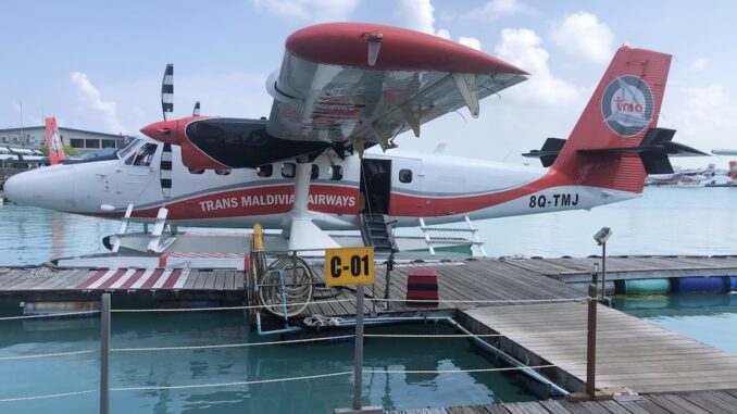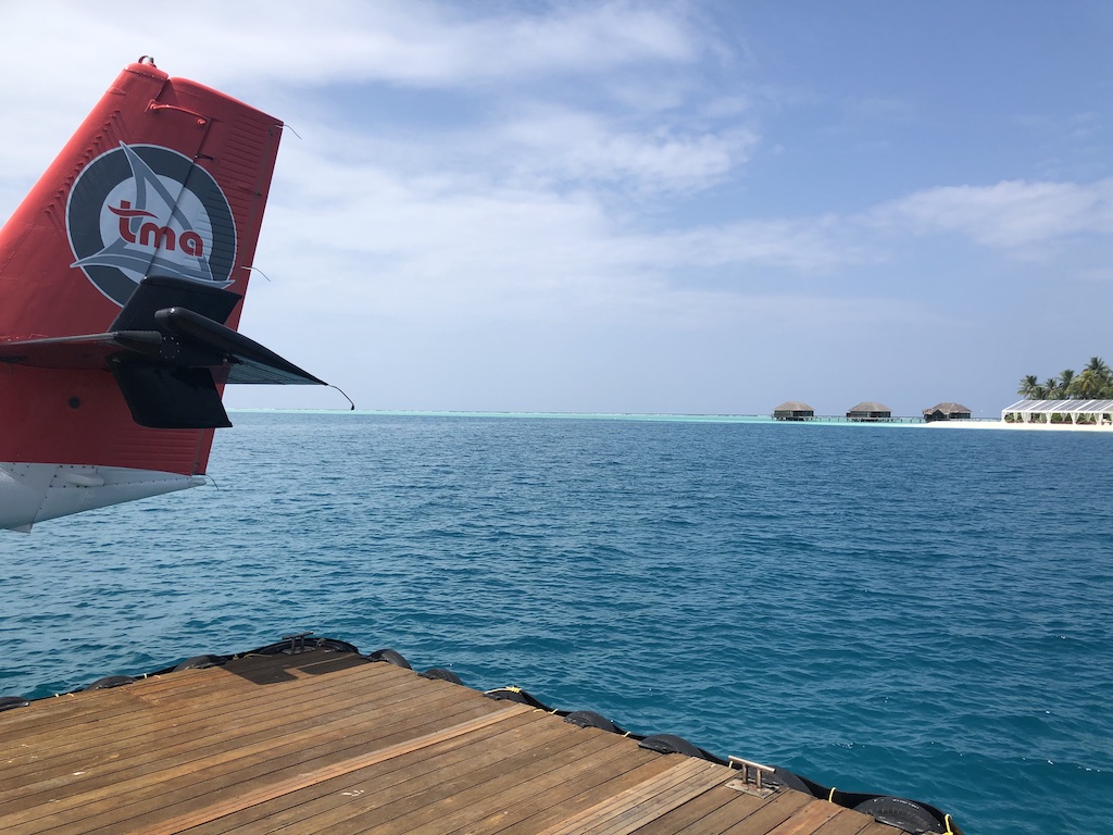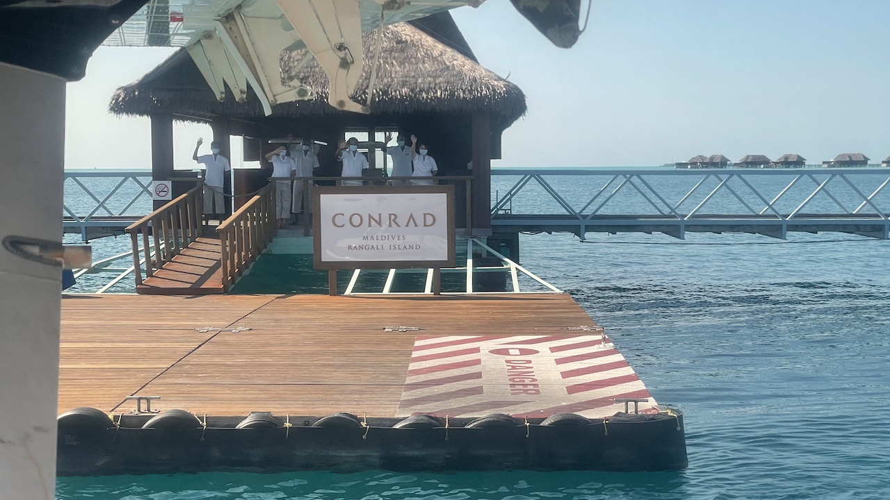 Der Flug sollte innerhalb der nächsten zwei Stunden nach unserer Ankunft in der Lounge starten. Nach etwa 45 Minuten wurden wir schon zur Maschine gebeten. Auf dem Weg zu unserem Resort machten wir einen Zwischenstopp an einem anderen Hotel, nach insgesamt 30 Minuten dockten wir am Ankunftssteg des Conrad an.