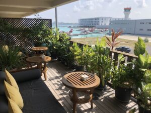 Im Flughafen Male wird man abgeholt und in einer Limousine zu dem Wasserflug-Terminal gebracht, wo man in einer eigenen Lounge von Conrad auf den Abflug warten kann. Dort sind zahlreiche Sitzgelegenheiten vorhanden, es gibt auch einen Außenbereich und Duschen.