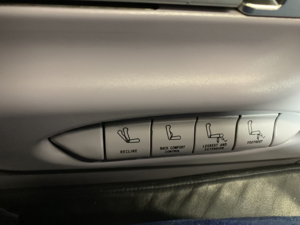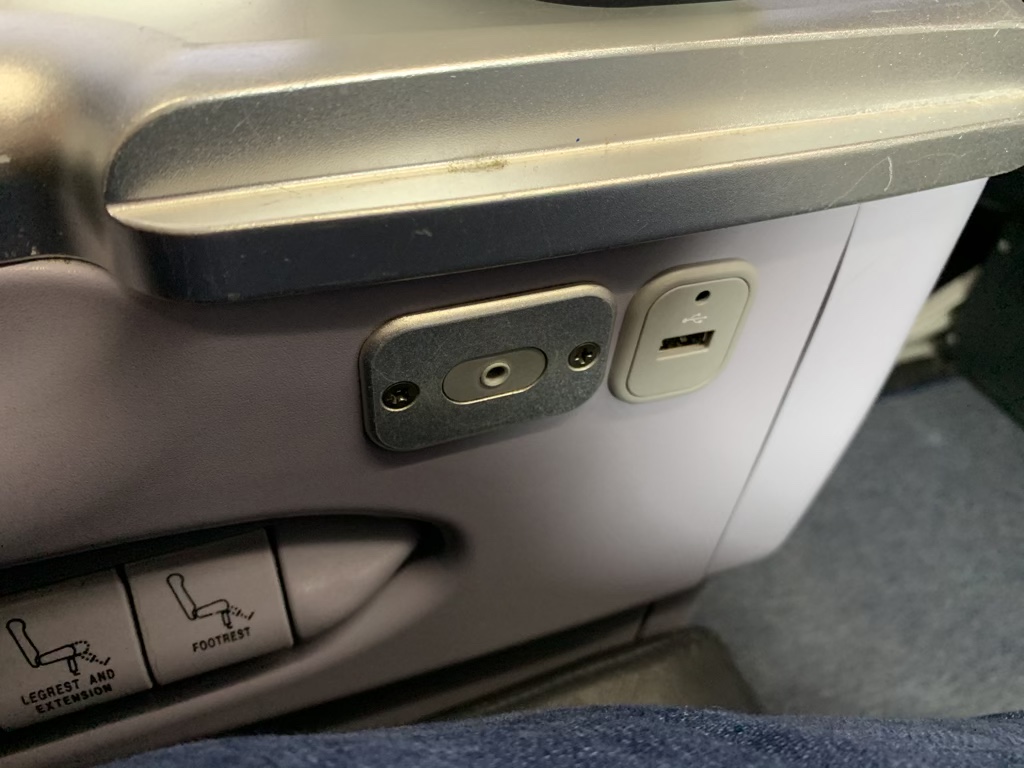 Die Verstellknöpfe befanden sich in der Armlehne, neben einem USB Anschluss und dem Kopfhöreranschluss für das In-Flight Entertainment.