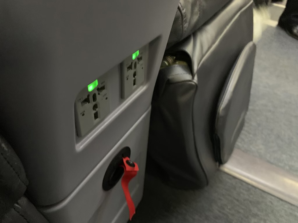 Auch deutlich moderner als die Business Class Sitze der 2000er Jahre waren die zwei 110 Volt Universalsteckdosen und auch die Lichter und Lüftungseinheit zeigten deutlich, dass man sich doch in einem modernen jungen Flugzeug befand.