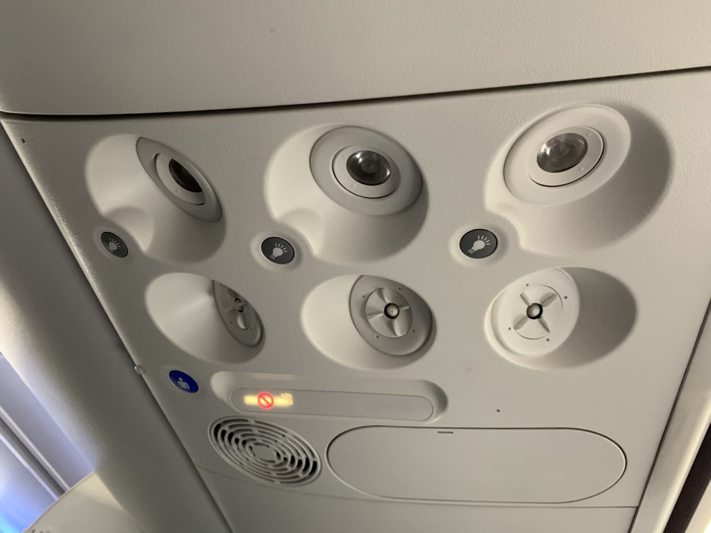 Ein wenig nervig fand ich, dass man keine Laptoptasche oder dergleichen unter den Vordersitz verstauen konnte. Dadurch musste alles in die Overheadbins, was zwar grundsätzlich kein Problem ist, aber gerade bei einem kurzen Flug habe ich gerne meine Laptoptasche bei mir, um hier auch ein wenig arbeiten zu können.