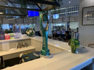 Die Coral Beach Lounge im Domestic Terminal wirkt wie ein kleines Häuschen innerhalb des Terminals. Nicht wie andere Lounges häufig total versteckt und von außen nicht einsehbar, kann man hier vom Terminal durch die Fenster ohne Weiteres in die Lounge schauen. Und natürlich auch von drinnen nach draußen, wenn man nicht lieber in die andere Richtung den Blick auf das Vorfeld genießt.