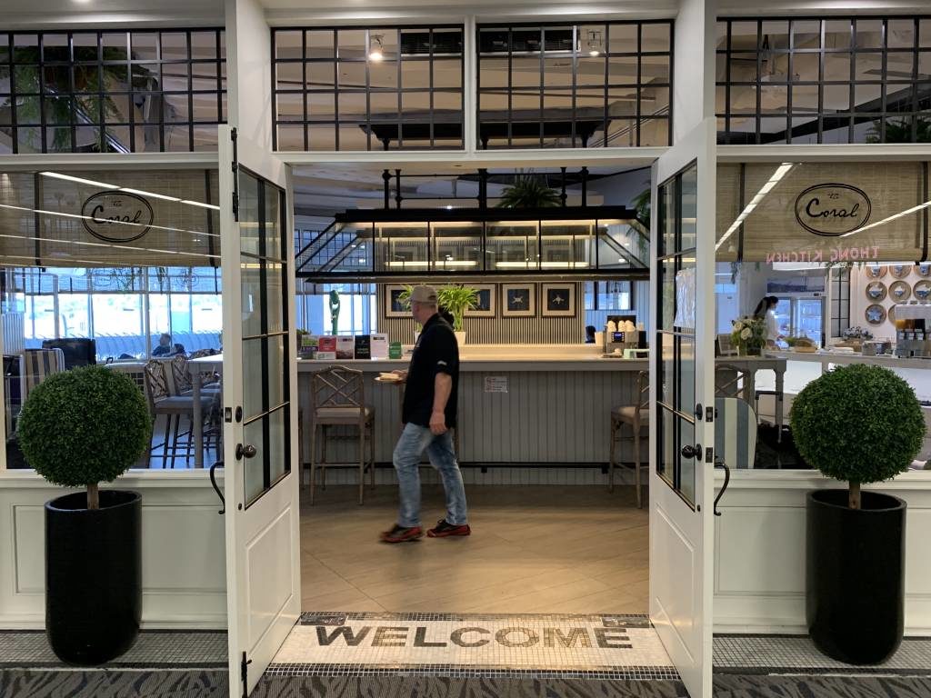 Obwohl die Lounges gut ausgeschildert sind, sind wir zunächst an der Coral Executive Lounge vorbei gegangen und standen plötzlich vor der Bangkok Airways Lounge, die selbst in Phuket leider keine Priority Pass Lounge ist. Die Coral Lounge ist sehr unscheinbar. Obwohl der Name am äußeren der Lounge deutlich erkennbar ist, wirkt sie eher wie ein Cafe oder Restaurant statt wie eine klassische Lounge. Und das verwirrte uns in dem Fall. Wenn Ihr also bei Gate 7 vor einem Restaurant/Cafe mit dem Namen „Coral Beach“ steht, seid ihr definitiv richtig.