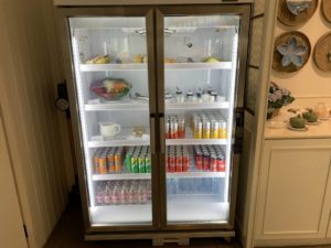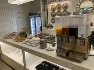 Besucht haben wir The Coral Beach Lounge am Morgen. Dementsprechend gab es auch eine Auswahl an Frühstück mit Brot, Toast und Brötchen, sowie Kuchen und Marmelade. Ergänzt wurde das Angebot um Rührei und Würstchen. Auch andere warme Speisen inklusive einer Suppe gab es zu diesem Zeitpunkt schon. In einem Kühlschrank standen frisches Obst, Salat und Joghurt zur Verfügung.