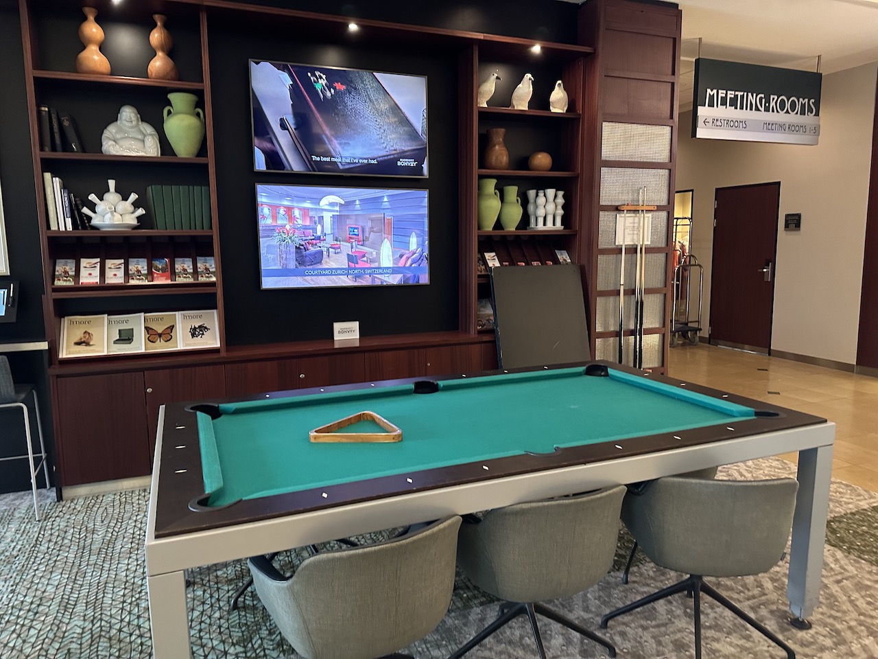 In der Lobby kann man eine der vielen Sitzmöglichkeiten nutzen um zu Verweilen oder Billard spielen.