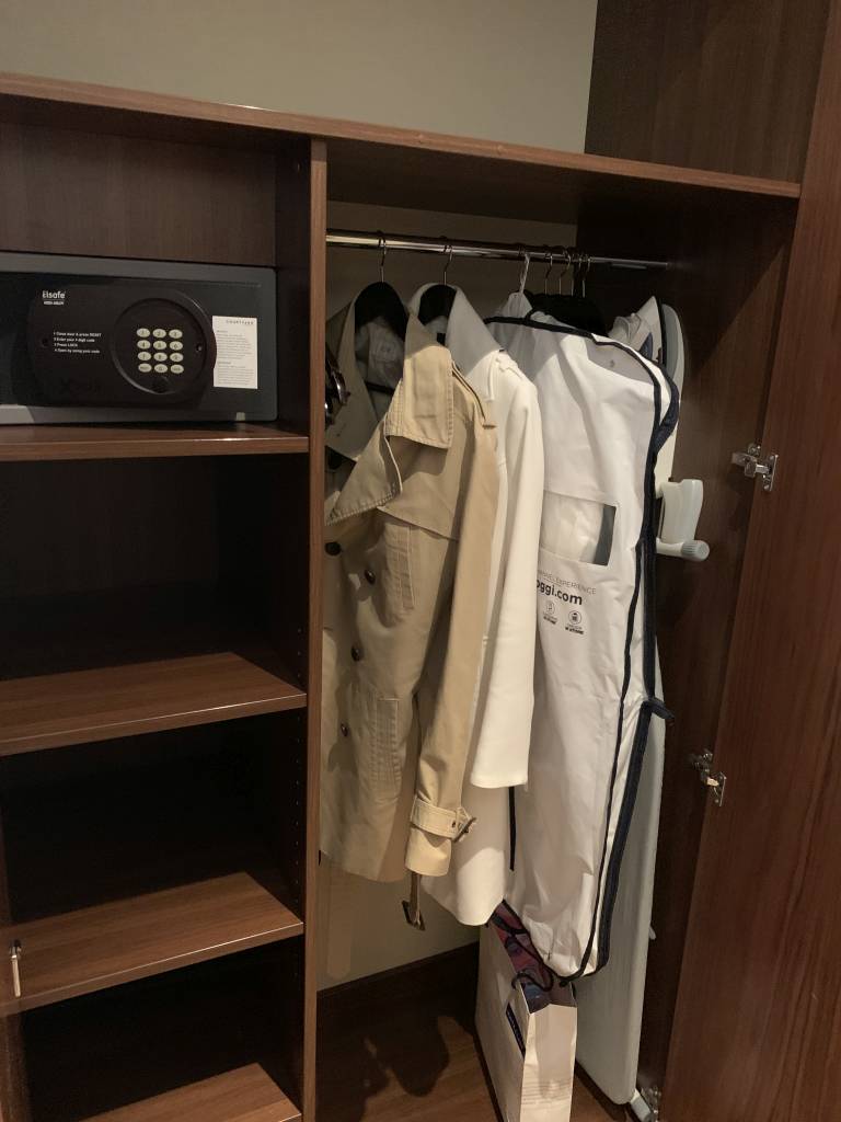 In der Garderobe im Gang zum Wohn- und Schlafbereich befand sich ein Safe, sowie Bügeleisen- und Brett.