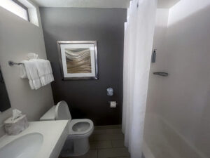 Die Statusanerkennung ist in Courtyards in den USA zumeist minimal ausgeprägt. Ich durfte mich am Check-In Schalter entscheiden, ob ich 500 Willkommenspunkte oder lieber 2×10 USD Hotelguthaben erhalten möchte. Da wir uns schnell einig waren, dass ich damit das Frühstück für die fünfte Person im Zimmer (die Rate beinhaltete nur Frühstück für zwei Erwachsene und zwei Kinder) abdecken könnte, entschied ich mich für eben dieses Guthaben.