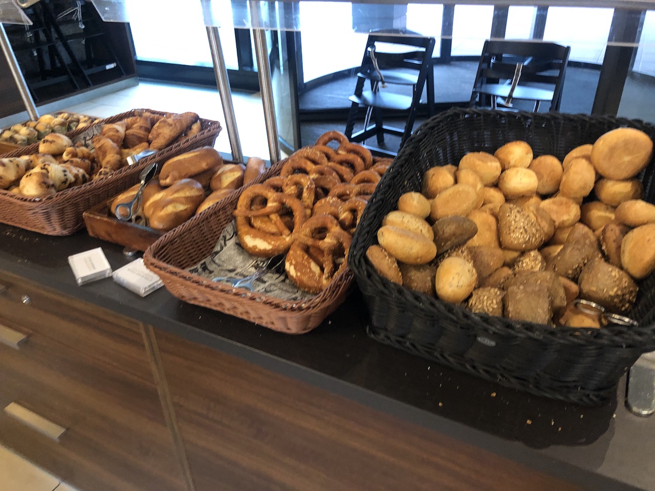 Abends war an der dortigen Bar auch etwas Betrieb und Leben. Hinter der Lobby geht es weiter zum Frühstücksraum, dort stehen auch bayerische Einflüsse wie Obatzda oder Weißwürste mit süßem Senf am Buffet bereit.