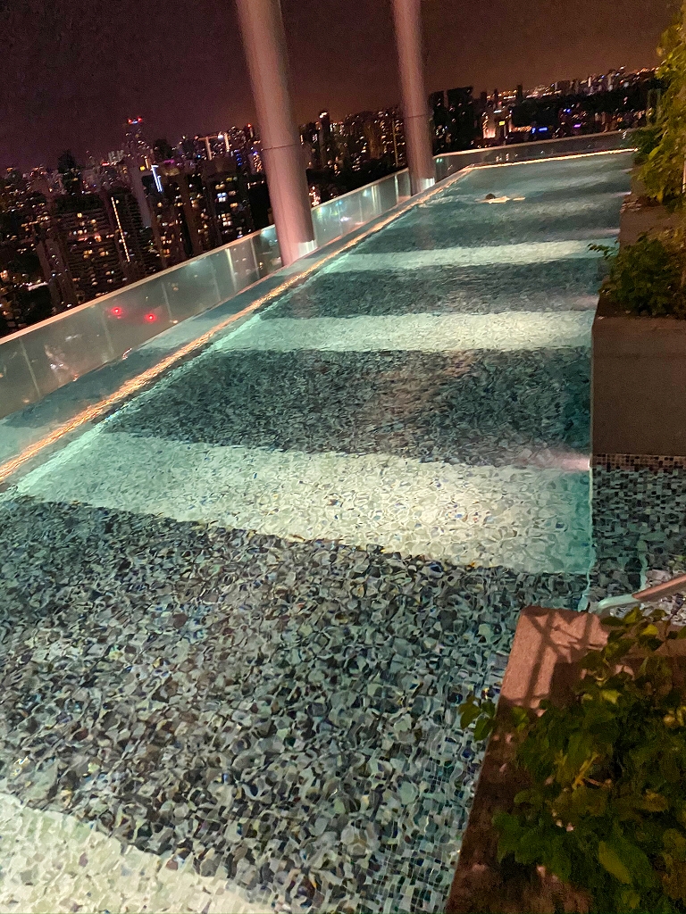 Die Rooftoop Bar ist sicherlich einer der Höhepunkte des Hotels (Ich konnte dem Wortspiel nicht widerstehen). Die Aussicht auf die Bay Area ist schön (wenn auch weit entfernt) und der beleuchtete Pool schafft eine angenehme Atmosphäre.