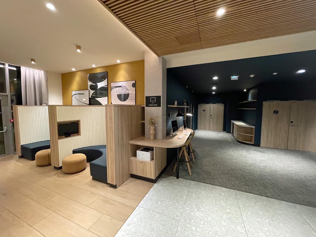 Das Hotel bietet im Erdgeschoss ein Business Center, eine Bar, ein Restaurant und einen kleinen Markt. Dort kann man für teures Geld Nahrungsmittel und Reiseutensilien erwerben. Zusätzlich befindet sich dort ein Mikrowellenherd, den Gäste nutzen können.