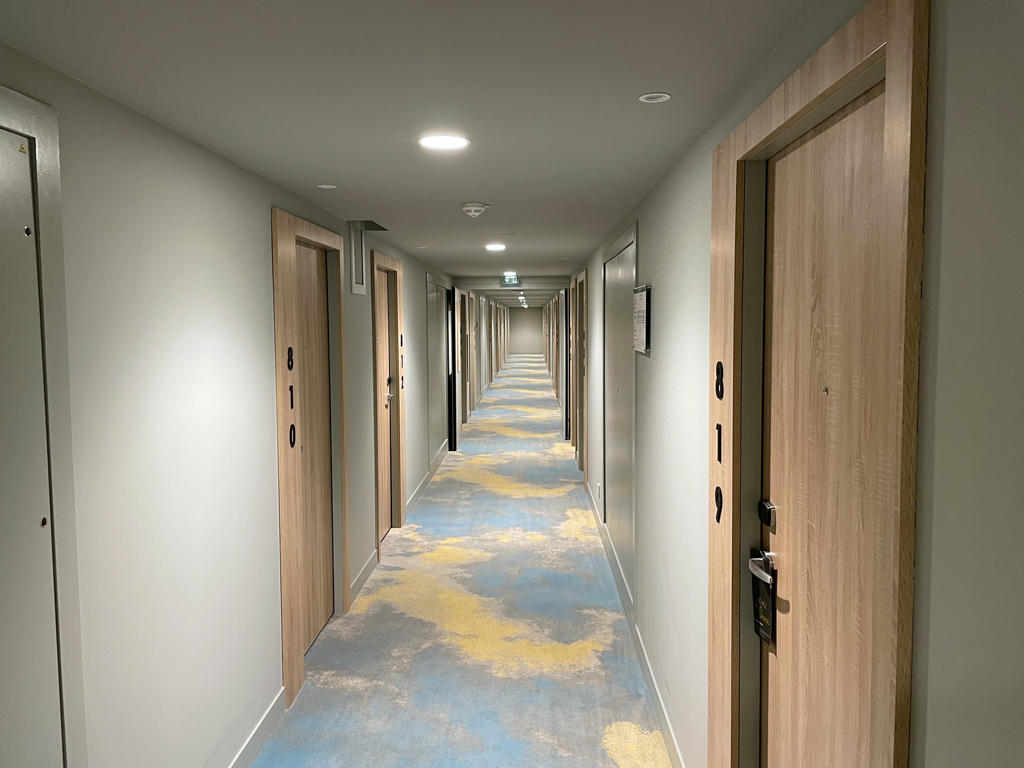 Das Hotel liegt wenige Kilometer vom Flughafen entfernt und ist über den CDG VAL Zug zu erreichen. Dafür steigt man am „Parking PR“-Stop aus. Von dort aus sind es ca. 200m zu Fuß bis zum Hotel. Der CDG VAL fährt von 4 Uhr morgens bis 1 Uhr morgens am Folgetag in einem 4-Minuten-Takt. Ursprünglich hatte ich geplant, den CDG VAL zum und vom Hotel zu nutzen. Da Air France jedoch in letzter Minute einen Chauffeurservice anbot, griff ich auf diesen zurück.