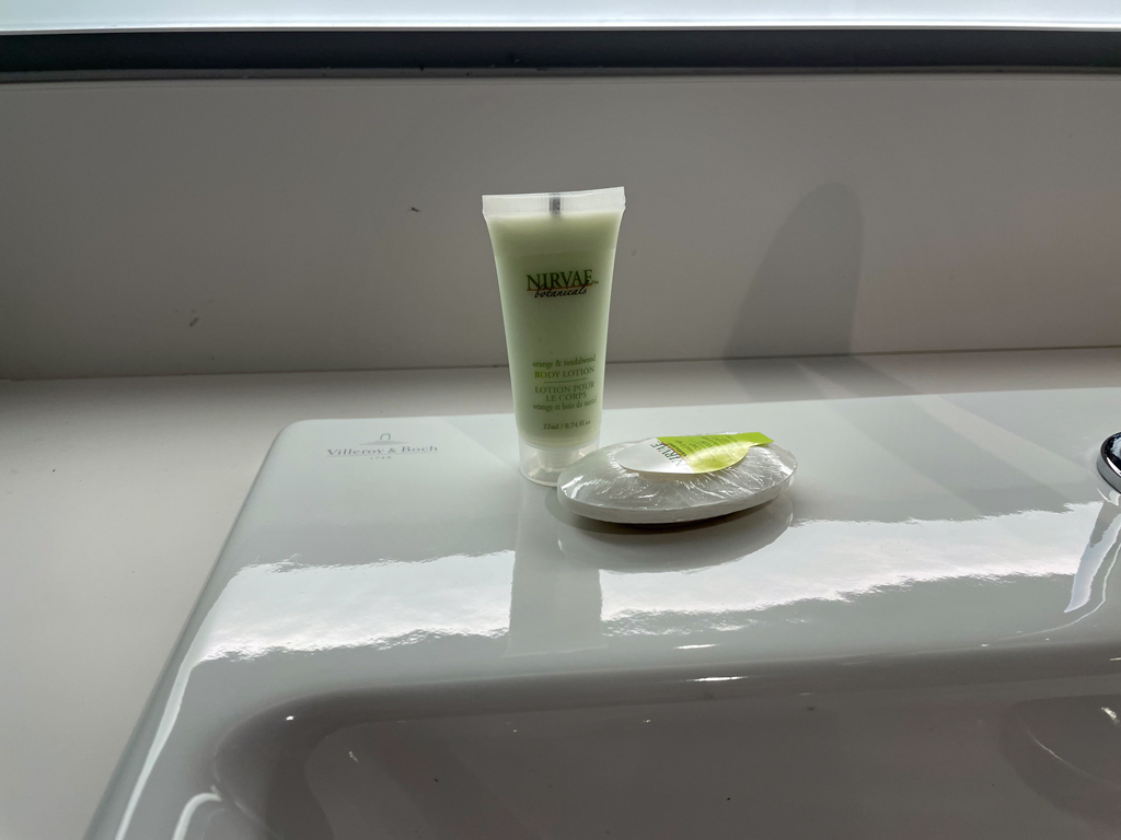 Am Waschtisch warteten ein Stück Seife und Body Lotion. Die Pflegeserie stammt (nach wie vor) von Nirvae Botanicals.