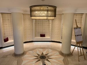 Es gibt dort einen großen Pool, sowie einen Whirlpool. Der Whirlpool war allerdings mit einer großen Platte bedeckt und scheint dauerhaft geschlossen zu sein. Geschlossen ist ein gutes Motto, denn auch im Sauna-Bereich wiesen an mehreren Stellen Absperrbänder darauf hin, dass Bereiche nicht zu benutzen sind. Dazu gehörte zum Beispiel auch das Eisbecken. Interessanterweise waren dies genau die gleichen Bereiche, die auch schon im April 2019 abgesperrt waren. Das ist leider eher eine Baustelle, als ein Wellness-Tempel.