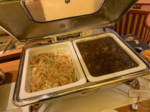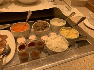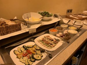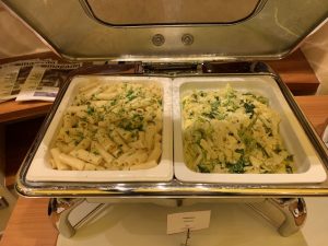 Die Qualität der Speisen war super. So gab es bei unserem Besuch Kalbsgeschnetzeltes mit Pilzsoße, Spätzle, Wirsing-Gemüse und Penne als warme Optionen. Bei den kalten Snacks befand sich neben diversen Salaten auch eine Platte mit Trockenfleisch. Geschmacklich war alles sehr lecker und wirkte deutlich hochwertiger, als das sonst häufig gewohnte Lounge-Convenience-Food.
