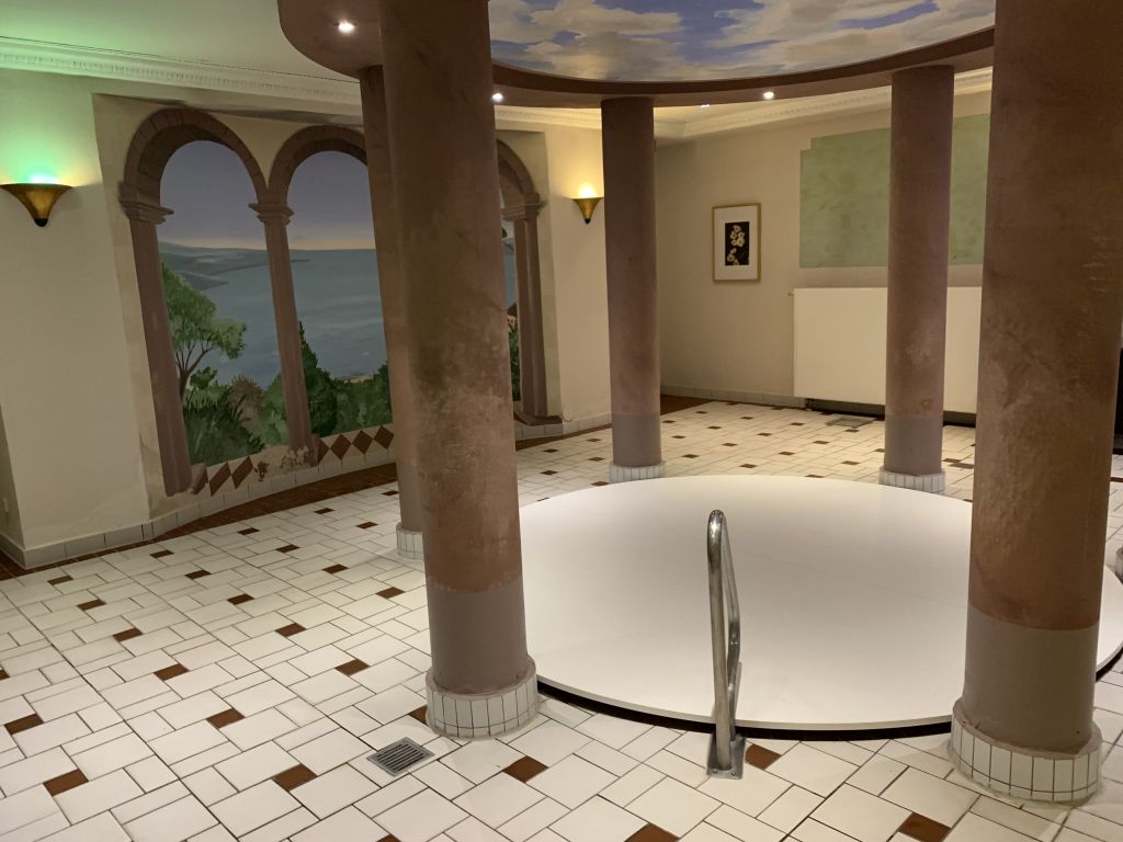 Es gibt dort einen großen Pool, sowie einen Whirlpool. Der Whirlpool war allerdings mit einer großen Platte bedeckt und scheint dauerhaft geschlossen zu sein. Geschlossen ist ein gutes Motto, denn auch im Sauna-Bereich wiesen an mehreren Stellen Absperrbänder darauf hin, dass Bereiche nicht zu benutzen sind. Dazu gehörte zum Beispiel auch das Eisbecken. Interessanterweise waren dies genau die gleichen Bereiche, die auch schon im April 2019 abgesperrt waren. Das ist leider eher eine Baustelle, als ein Wellness-Tempel.
