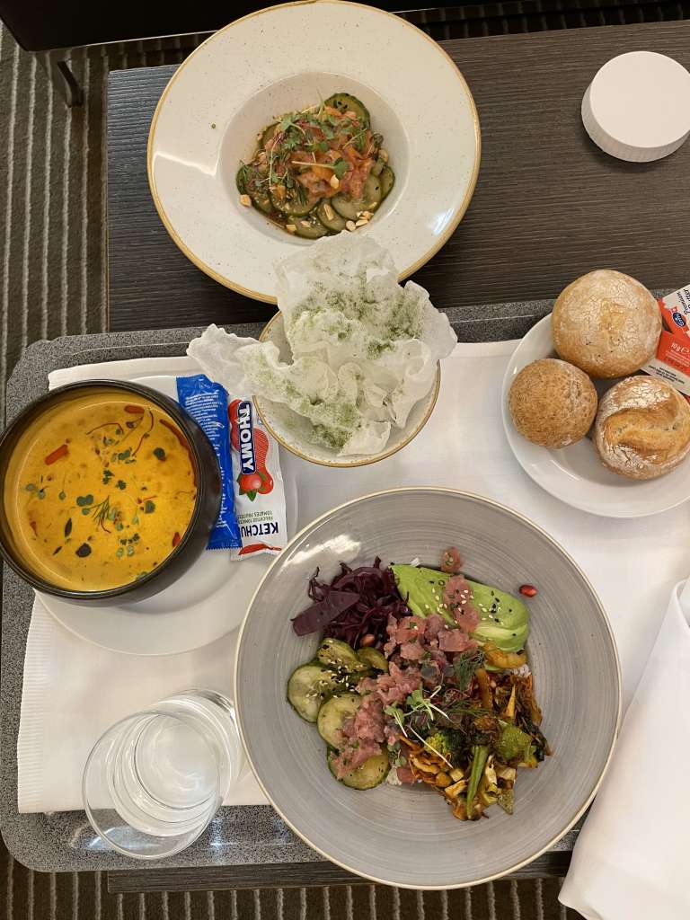 Wir bevorzugten es, auf dem Zimmer zu speisen und wählten die Durchwahl für den Zimmerservice. Die Wahl fiel auf eine Lobster Bisque, Thunfisch-Tartar und eine Bowl für insgesamt 75 CHF.