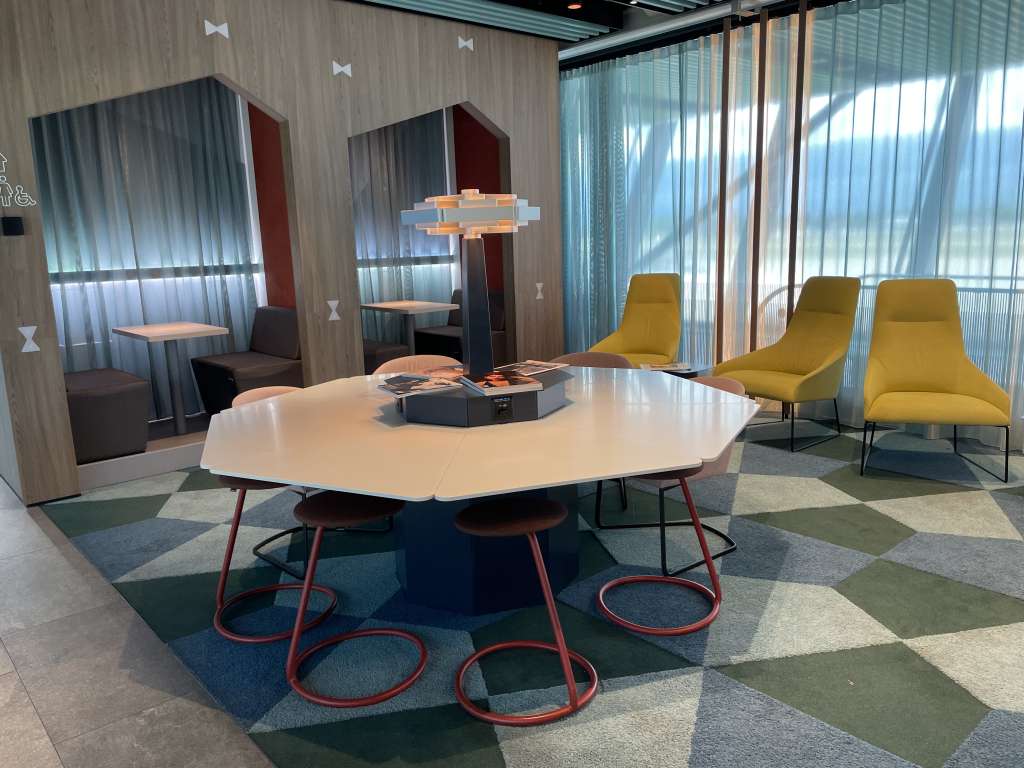 Die Lounge ist maximal lichtdurchflutet, da der Ostflügel des Flughafens komplett verglast ist. So konnte ich auch zusätzlich noch die tolle Aussicht von einer der bequemen Sitzkombinationen mit viel Privatsphäre genießen. Viel Privatsphäre boten zahlreiche Trennwände und auch einige Separees.