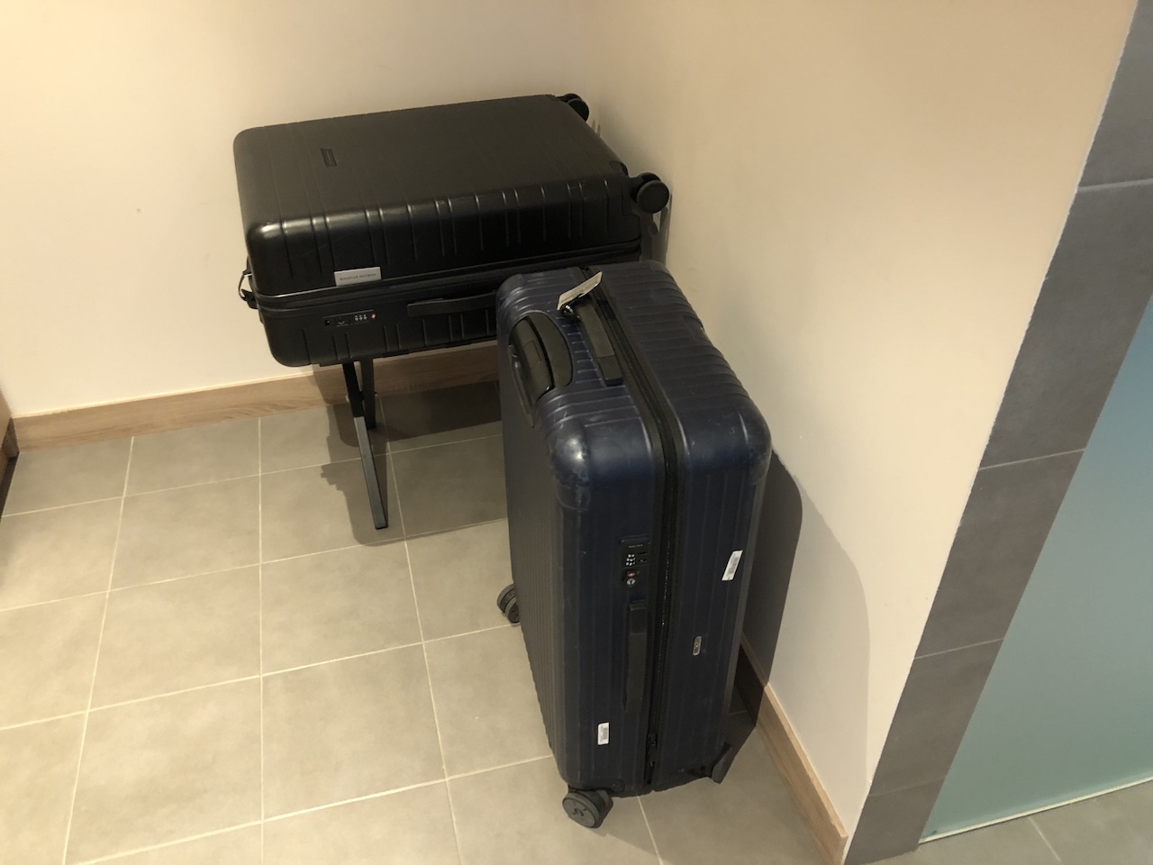 In einem Zwischenraum ist das Ankleidezimmer mit Ablage für Koffer, Schränken und Kaffeemaschine.